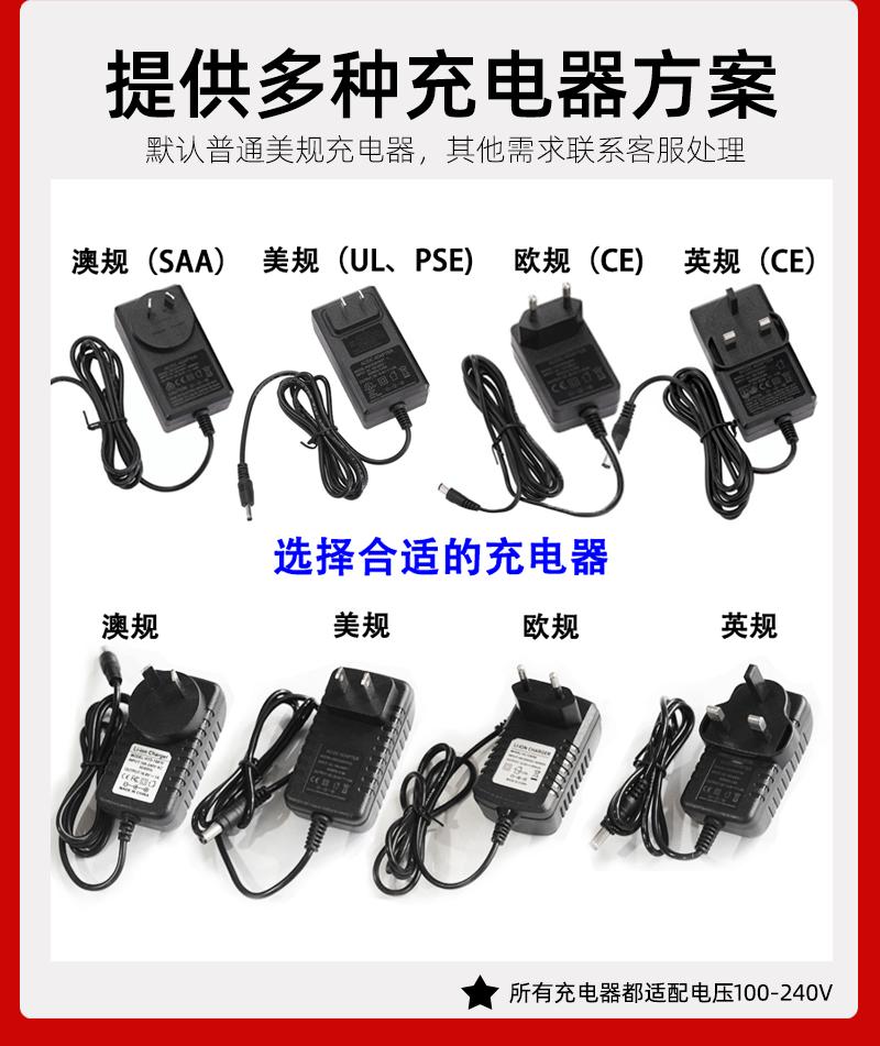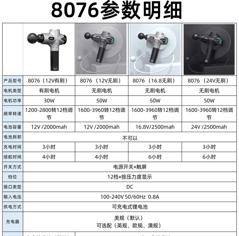 12V(3 cells)-brush motor, 12V(3 cells)-brushless motor, 16.8V(4 cells)-brushless motor, 24V(6 cells)-brushless motor