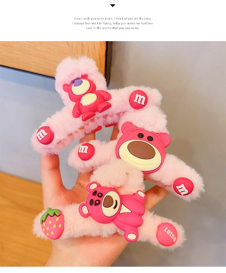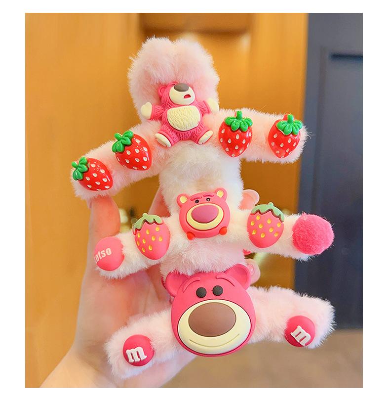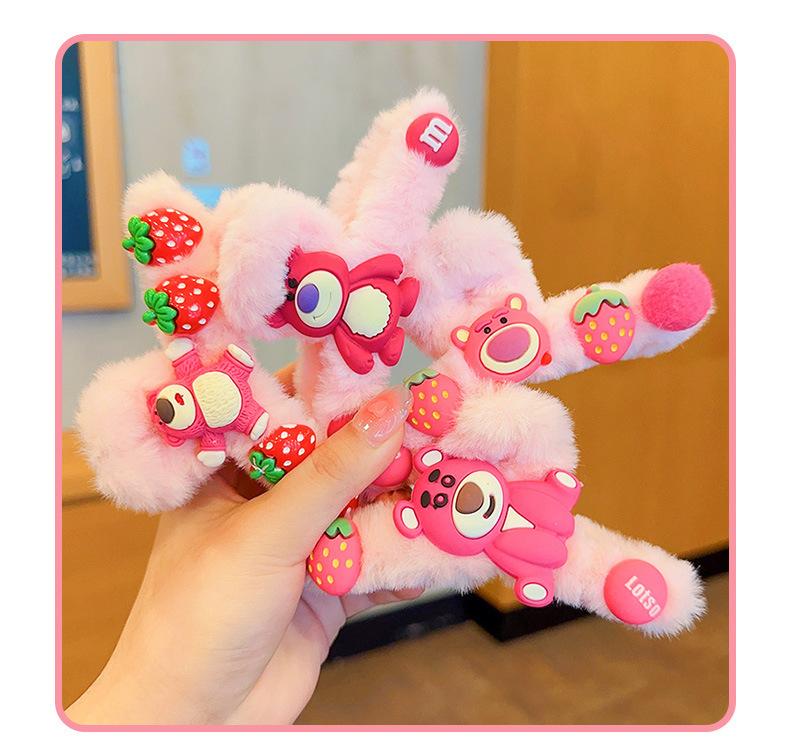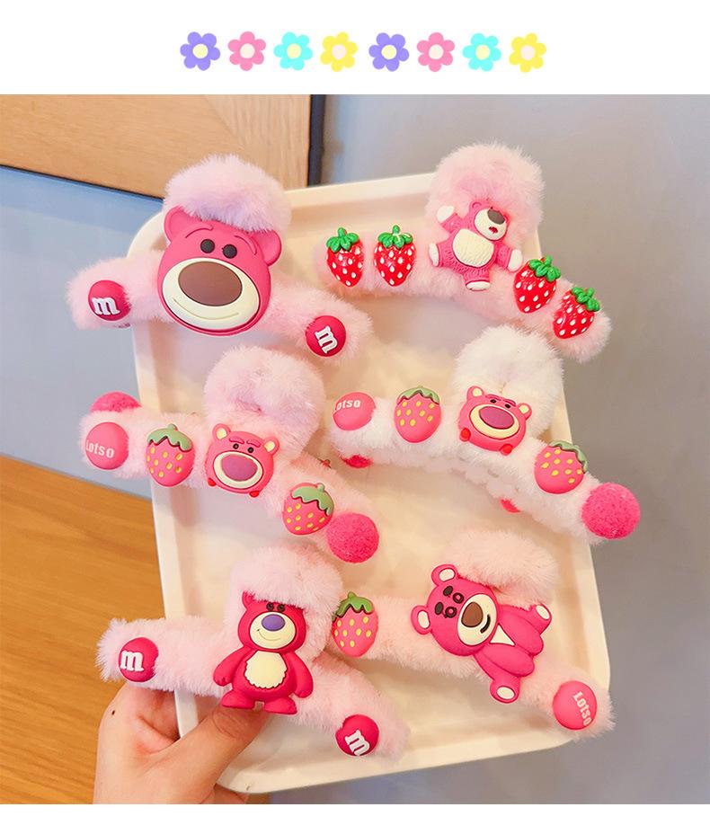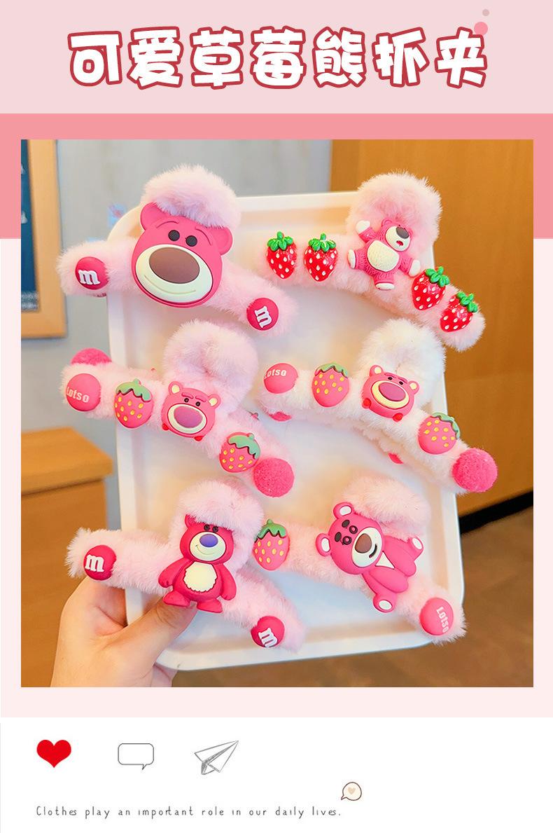 Fofo no lugar ~ clipe infantil de urso morango rosa grampo de cabelo para menina enfeite bobina de cabelo atrás da cabeça clipe de tubarão feminino