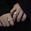Anel Quadrado Prateado S925 Estilo Coreano Feminino Vintage Fashionável Geométrico em V Aberto Irregular Ins Anel de Dedo