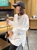 Camiseta de algodão irregular de manga comprida 2024 outono e inverno design de camisa de baixo sentido nicho exclusivo split top