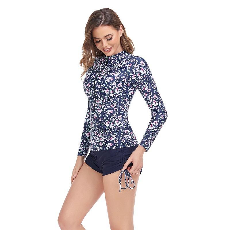Novo traje de surf europeu e americano estampado manga comprida proteção solar zíper cordão apertado shortsuit amazon estampado wetsuit