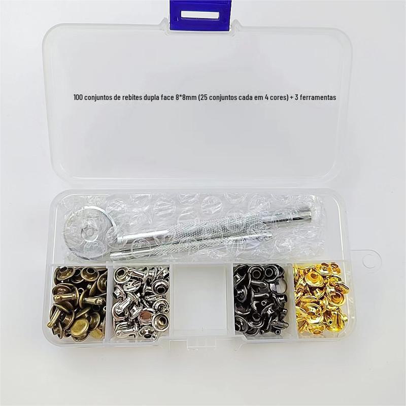 Nome: 100 conjuntos de rebites dupla face + 3 ferramentas