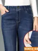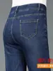 Jeans Mom para Mulheres 2025 Outono Novo Cintura Alta Stretch Calças de Perna Reta Calças Longas Soltas para Mulheres de Meia-Idade