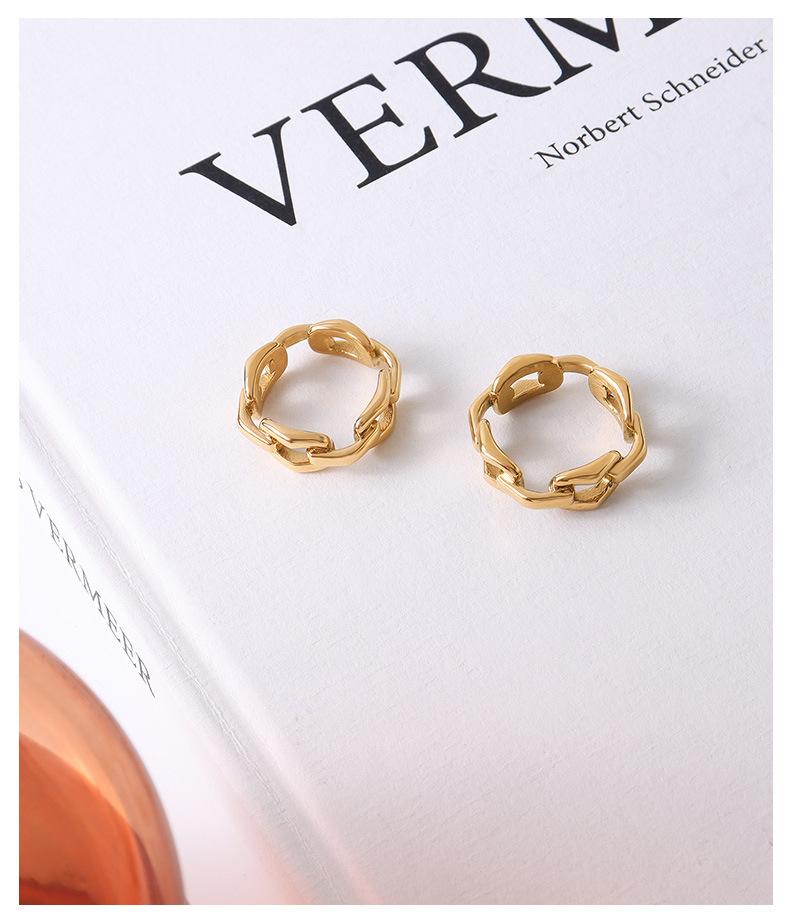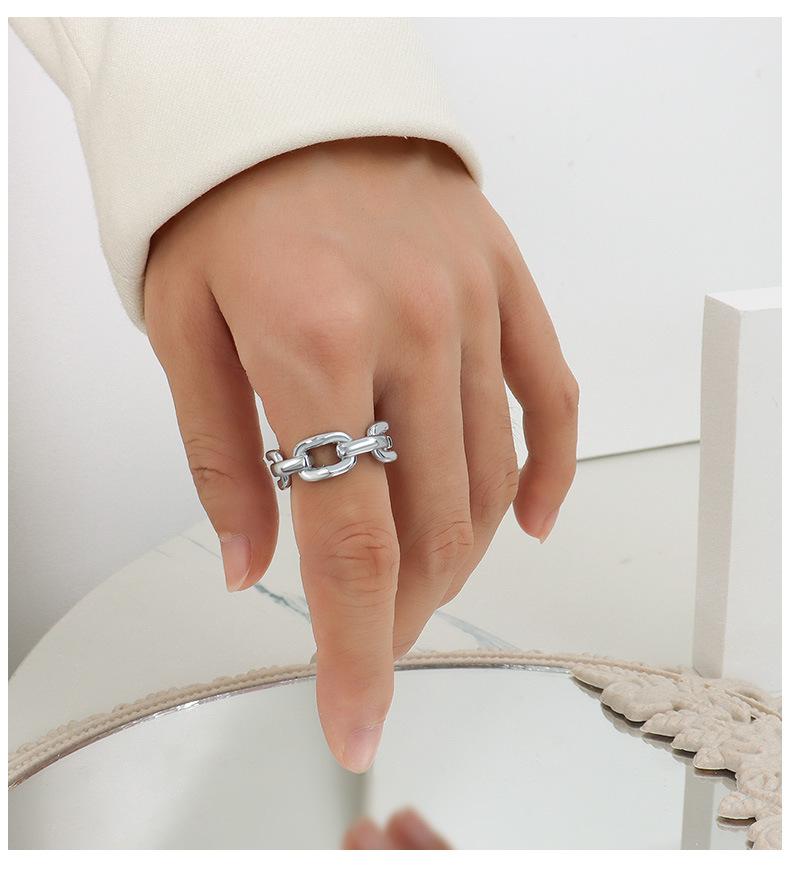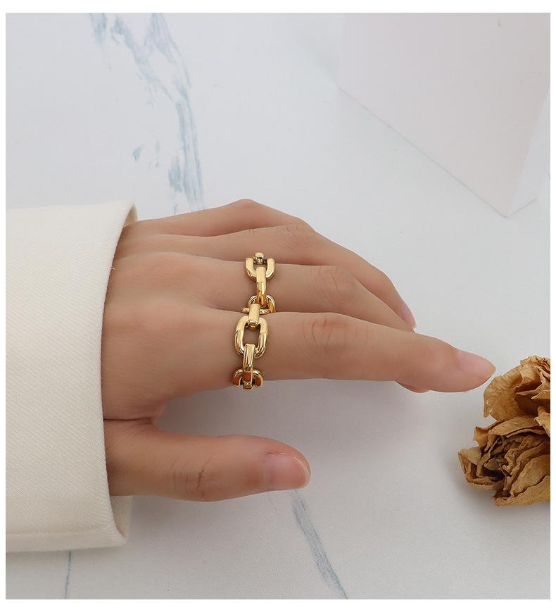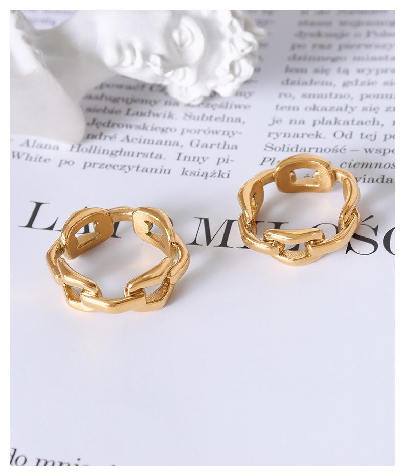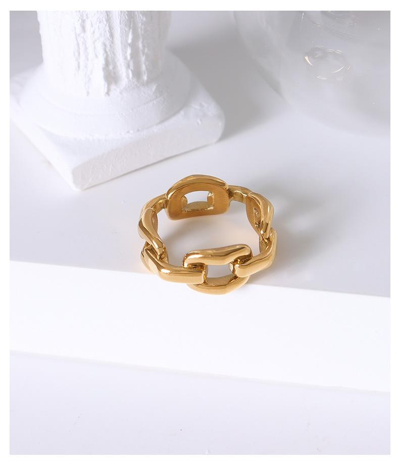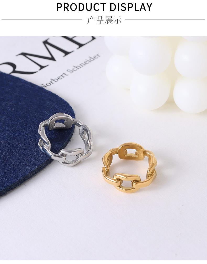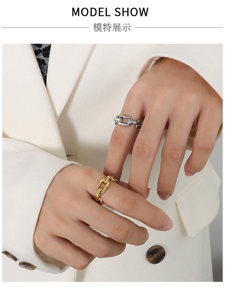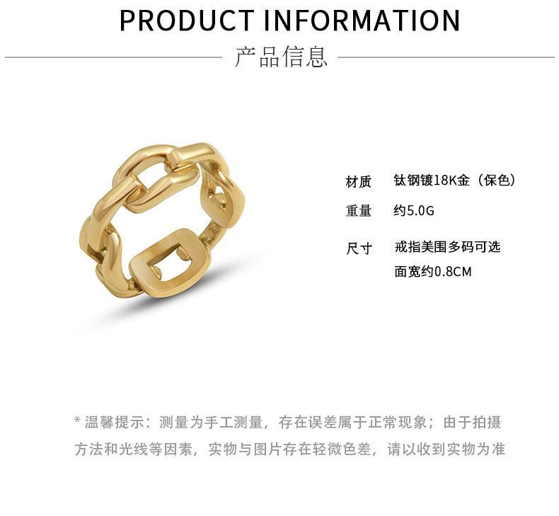 Anel Vazado Corrente Aço Titânio Banhado Ouro 18k Estilo Ins Simples Europeu e Americano Estilo Frio Anel de Dedo Feminino Joia