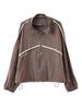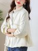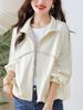 Casaco curto feminino 2024 primavera e outono novo elegante all-match pequena gola de mãe zíper cardigan top