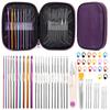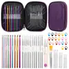 | Conjunto de ferramentas de crochê de 50 peças conjunto de crochê de alumínio colorido conjunto de crochê de couro vermelho rosa 22 peças |