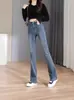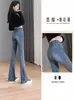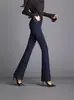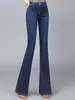 Jeans Bootcut Feminino Verão 2024 Azul Escuro Fino Cintura Alta Modelagem Slim Elástico Tamanho Grande Calças Flare