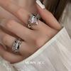 Anel de Amor Irregular Feminino Prata S925 Moda Retrô Indústria Pesada Elegante Coração de Pêssego Anel Aberto Hip-hop Anel de Dedo