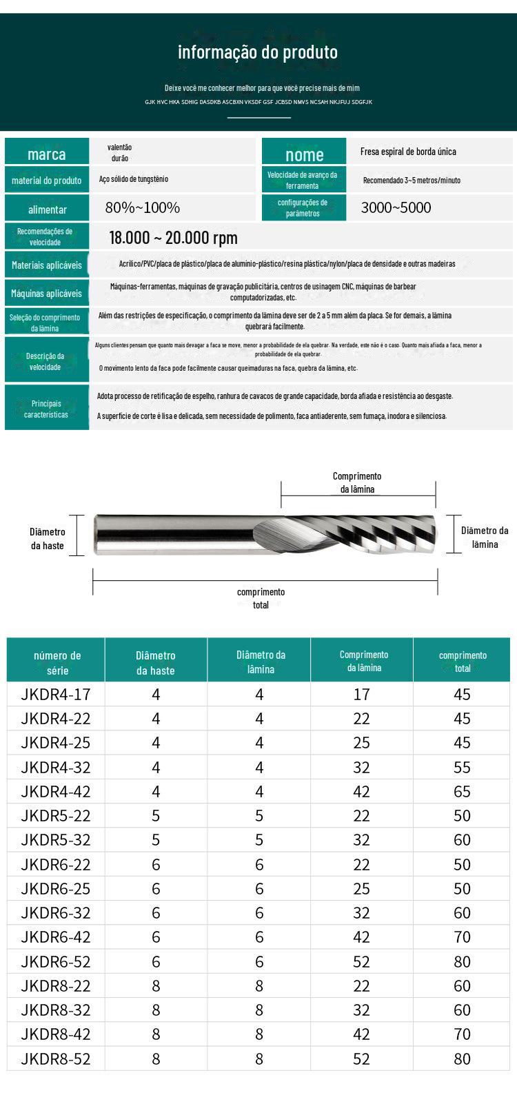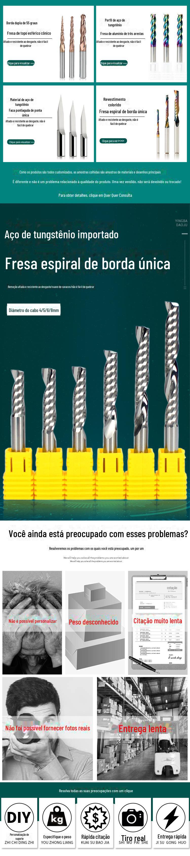 Fabricante de fresa espiral de ponta única Fresa de aço de tungstênio Faca de gravação acrílica Faca de corte espiral Fresa de ponta única