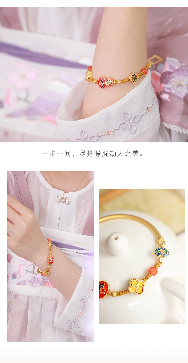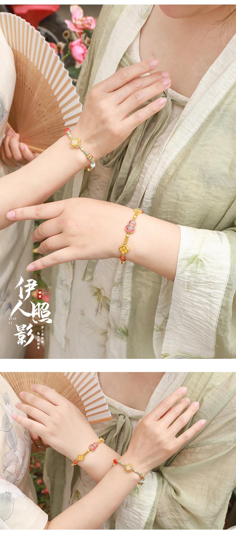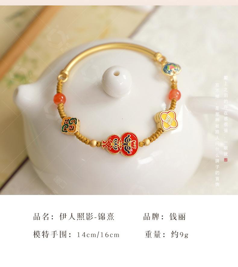 [Qian Li] pulseira cloisonné pingente portátil acessórios ouro antigo presentes luxo leve atacado