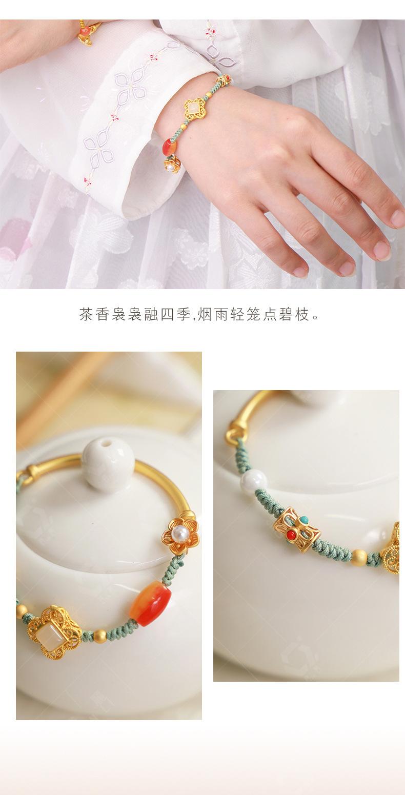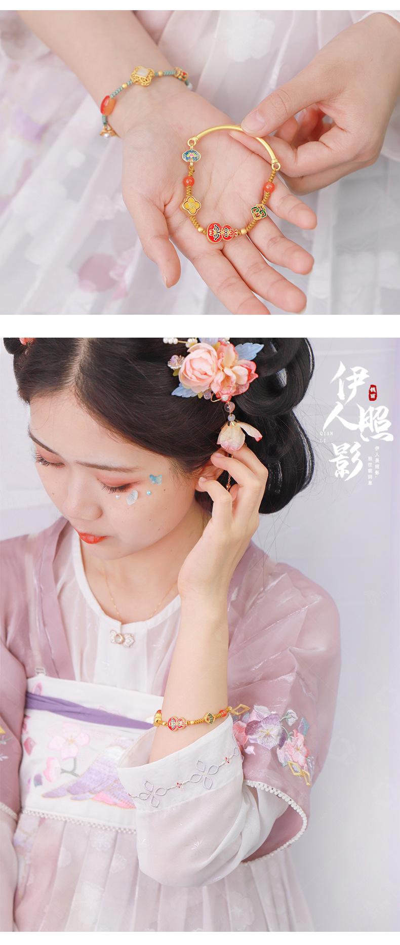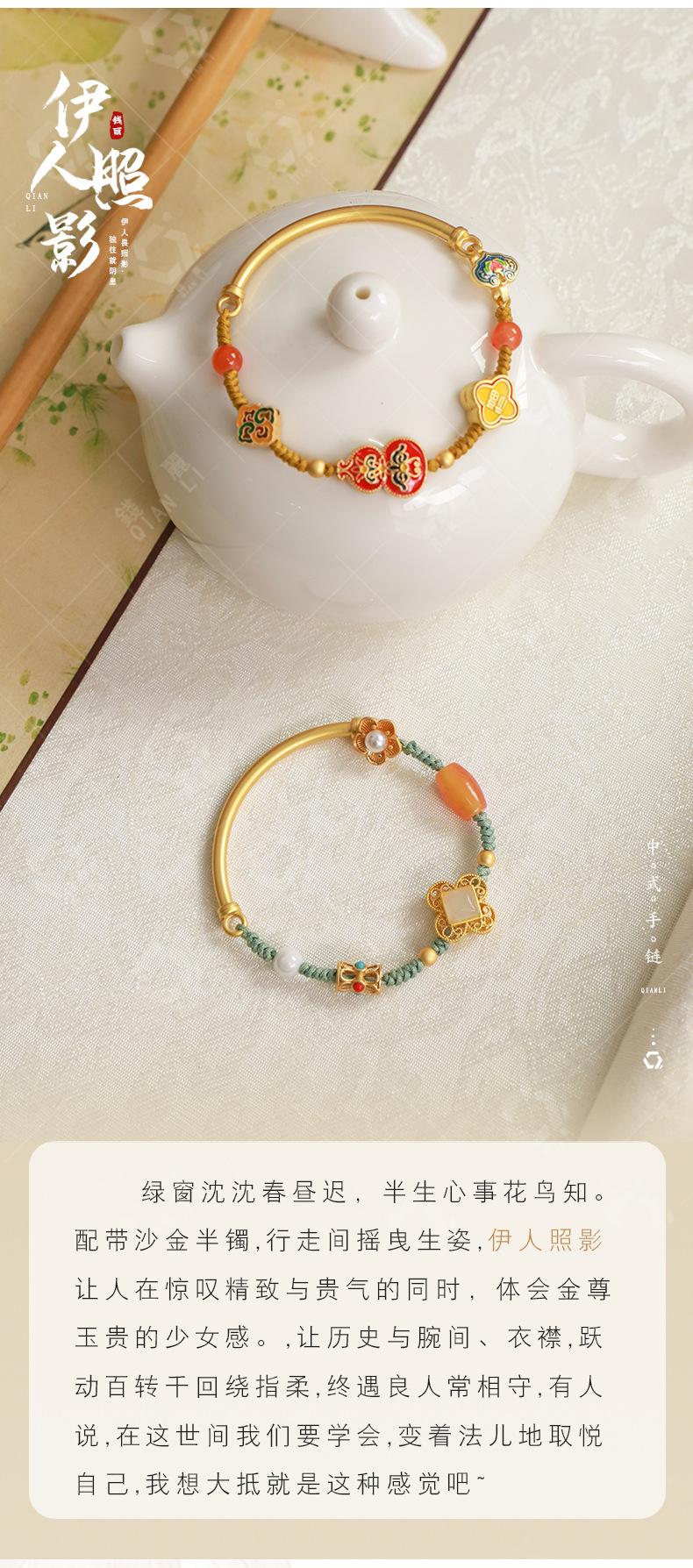 [Qian Li] pulseira cloisonné pingente portátil acessórios ouro antigo presentes luxo leve atacado