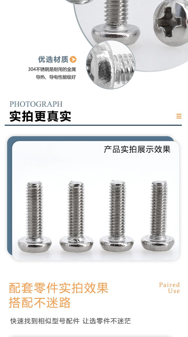 Parafusos de Cabeça Panela Fenda Cruzada Aço Inoxidável 304 Rosca Total Parafusos de Máquina Parafusos de Máquina Cauda Plana - M2-M2.5-M3