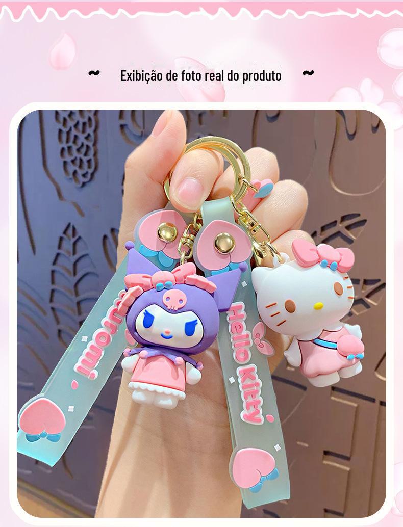 Chaveiro de Boneca Sanrio de Desenho Animado Fofo Criativo Kurome Casal Carro Bolsa Chaveiro Pingente Atacado