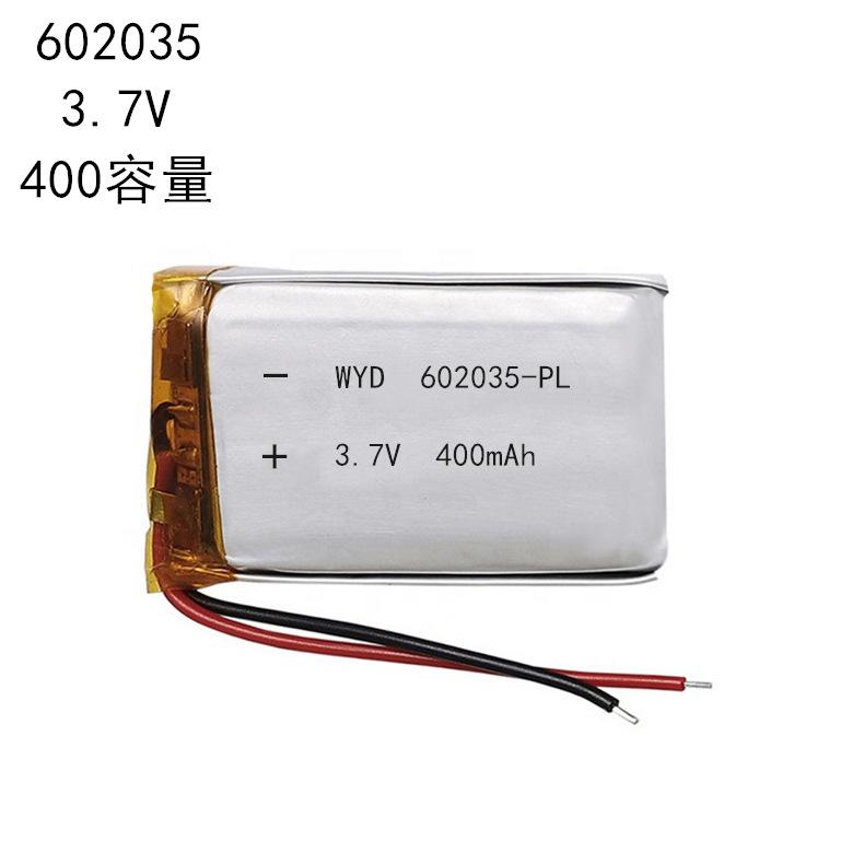 Bateria de polímero de lítio 602035 400mAh 3,7V controle remoto gravador de aeronave bateria de carregamento Bluetooth