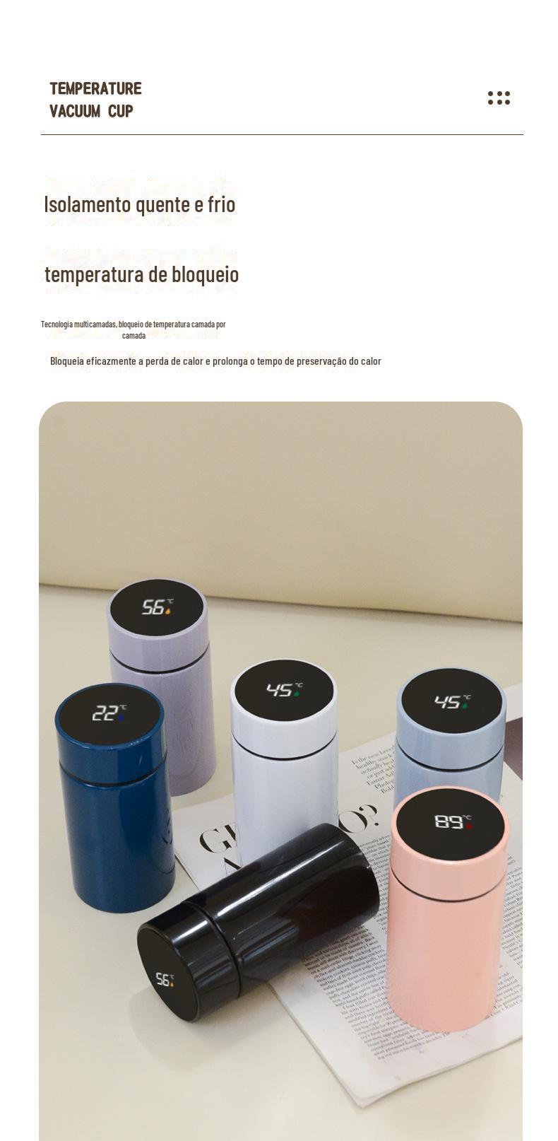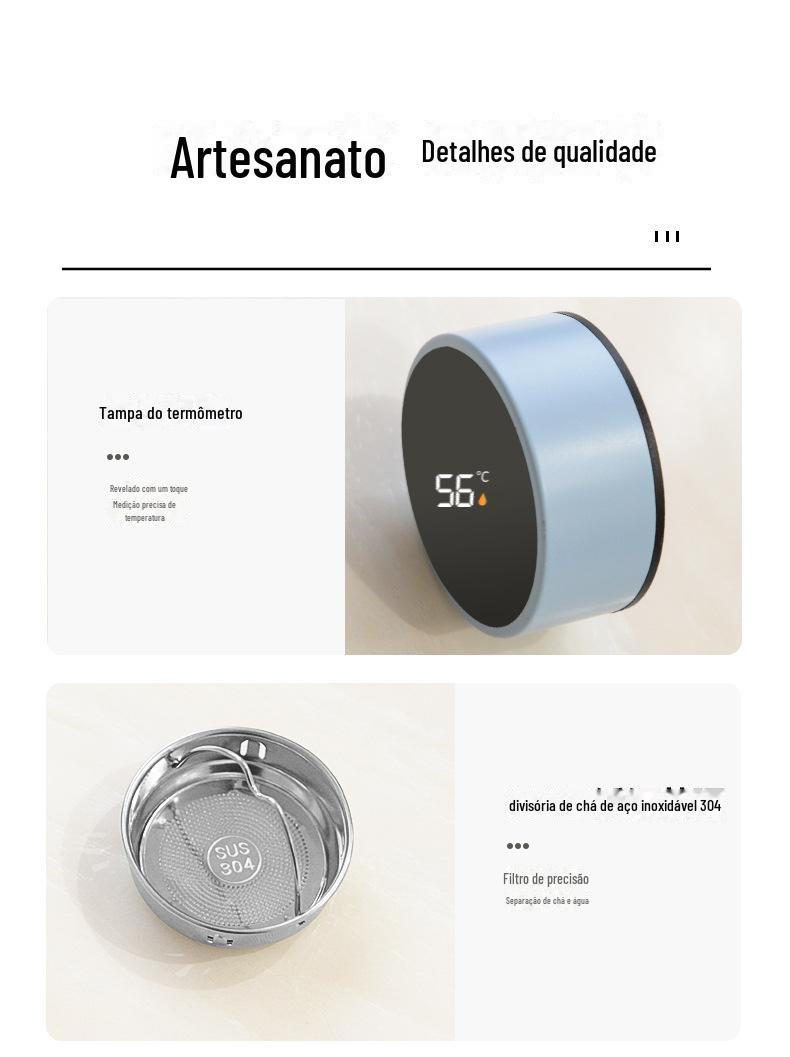 Copo Insulado Atacado com Display de Tela Inteligente, Copo para Separação de Chá e Água 316 de Grau Alimentício, Copo de Bolso Portátil de Aço Inoxidável 304