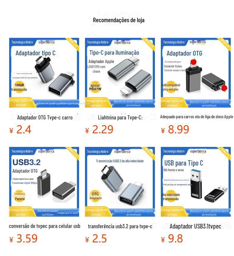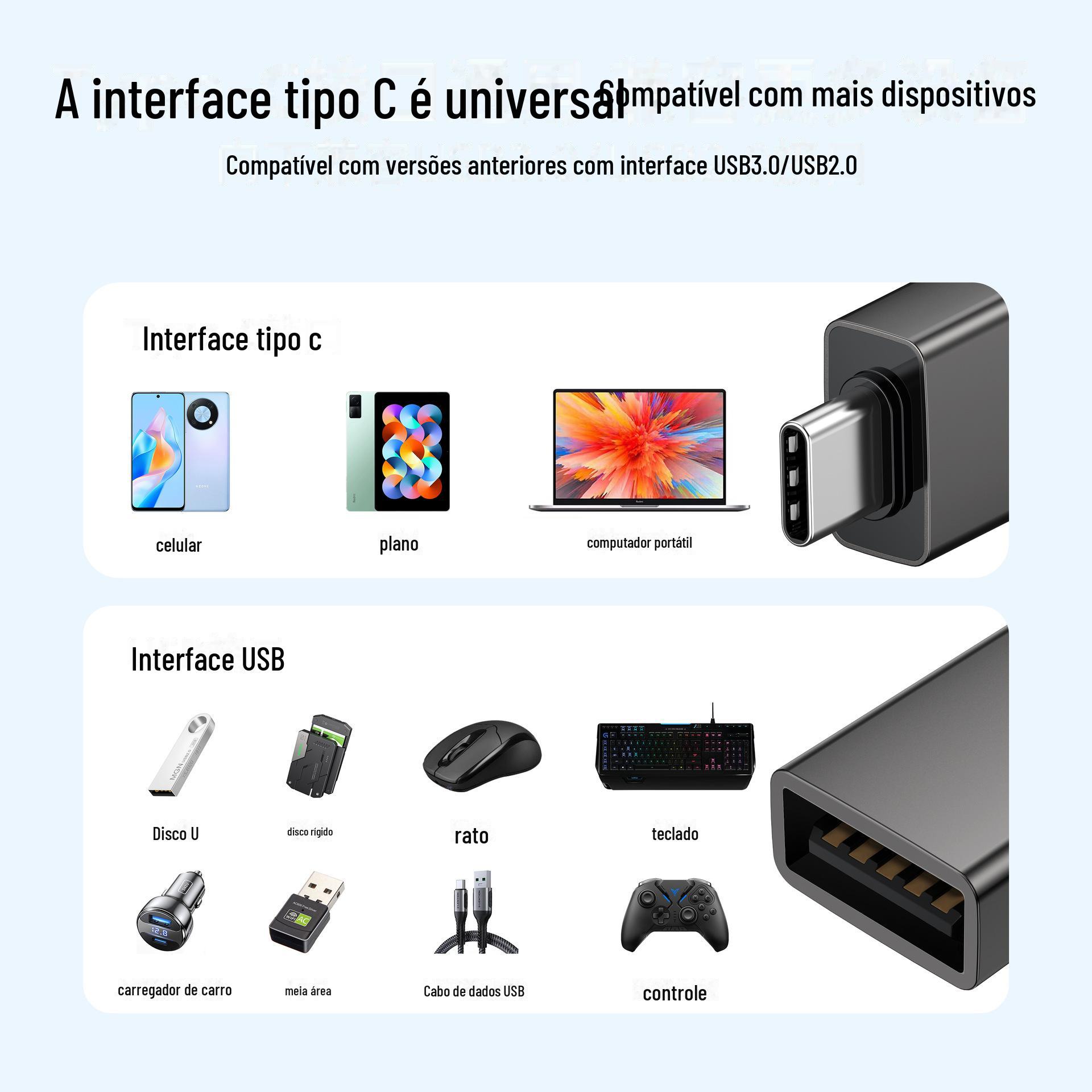 Adaptador Tipo-C Atacado Cabo de Dados para Celular Conversor para Pen Drive Adaptador Typec Macho para USB3.2 Fêmea