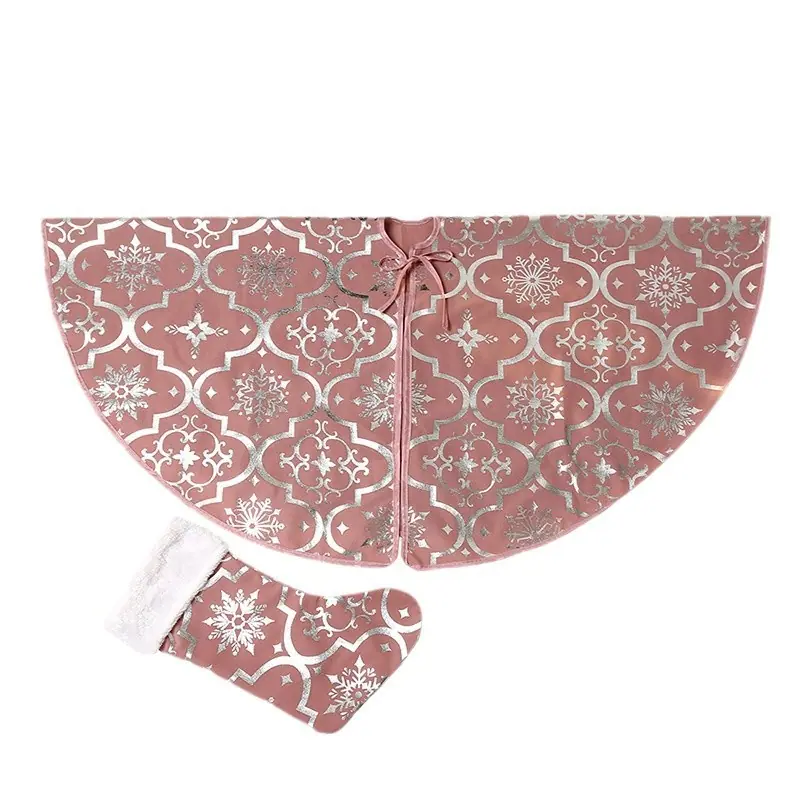 【Nome】Saia de árvore de Natal de nylon com floco de neve estampado em ouro