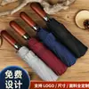 Guarda-chuva de Negócios Resistente ao Vento Totalmente Automático com 10 Varetas, Cabo de Madeira Gravado, 70% de Desconto, Guarda-chuva de Chuva, Guarda-chuva com Logotipo para Publicidade, Brinde Empresarial