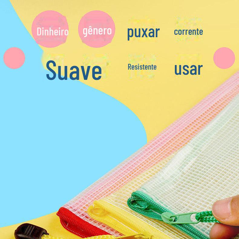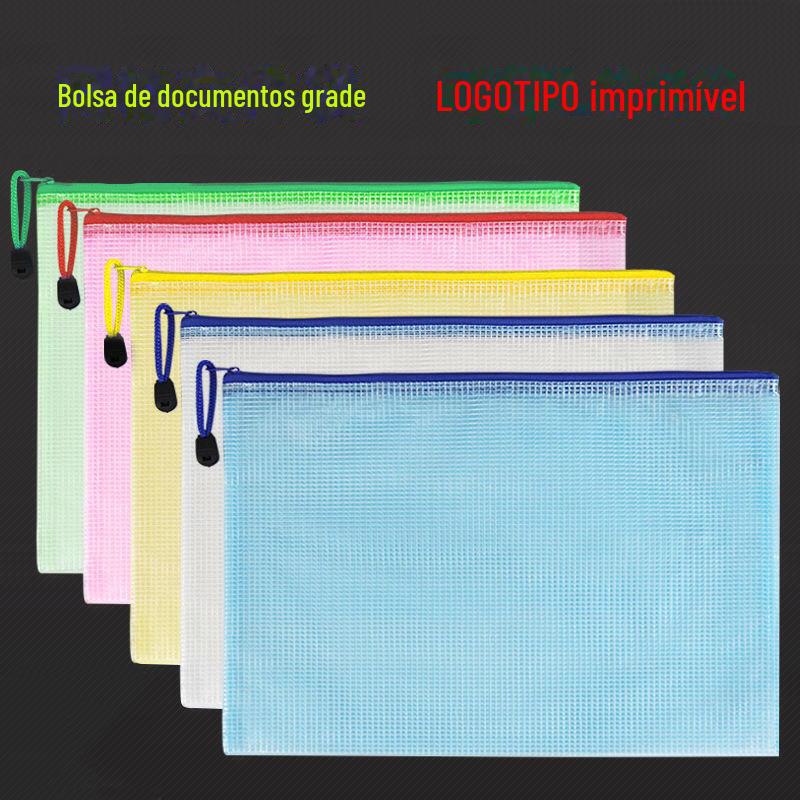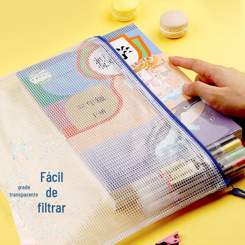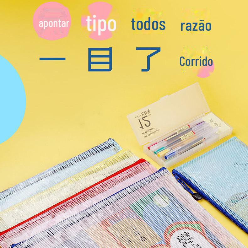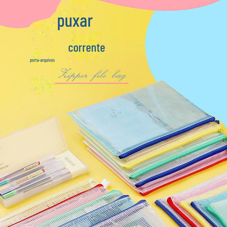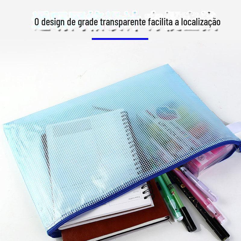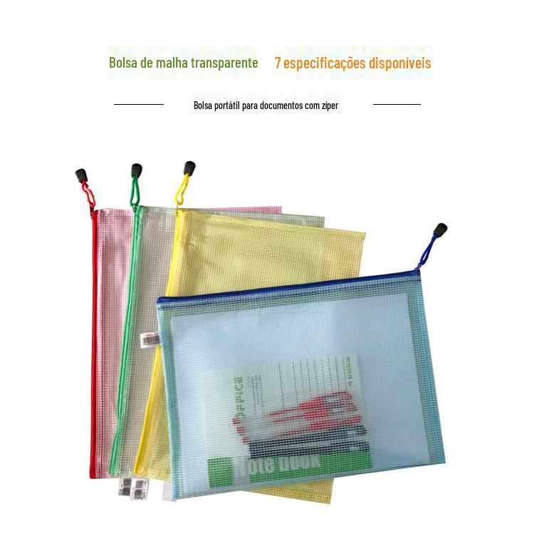 Material de Escritório Bolsa de Arquivo de Malha com Zíper A4 Transparente Portátil Saco para Documentos de Papel de Teste Atacado de Papelaria Saco de Arquivo Impermeável