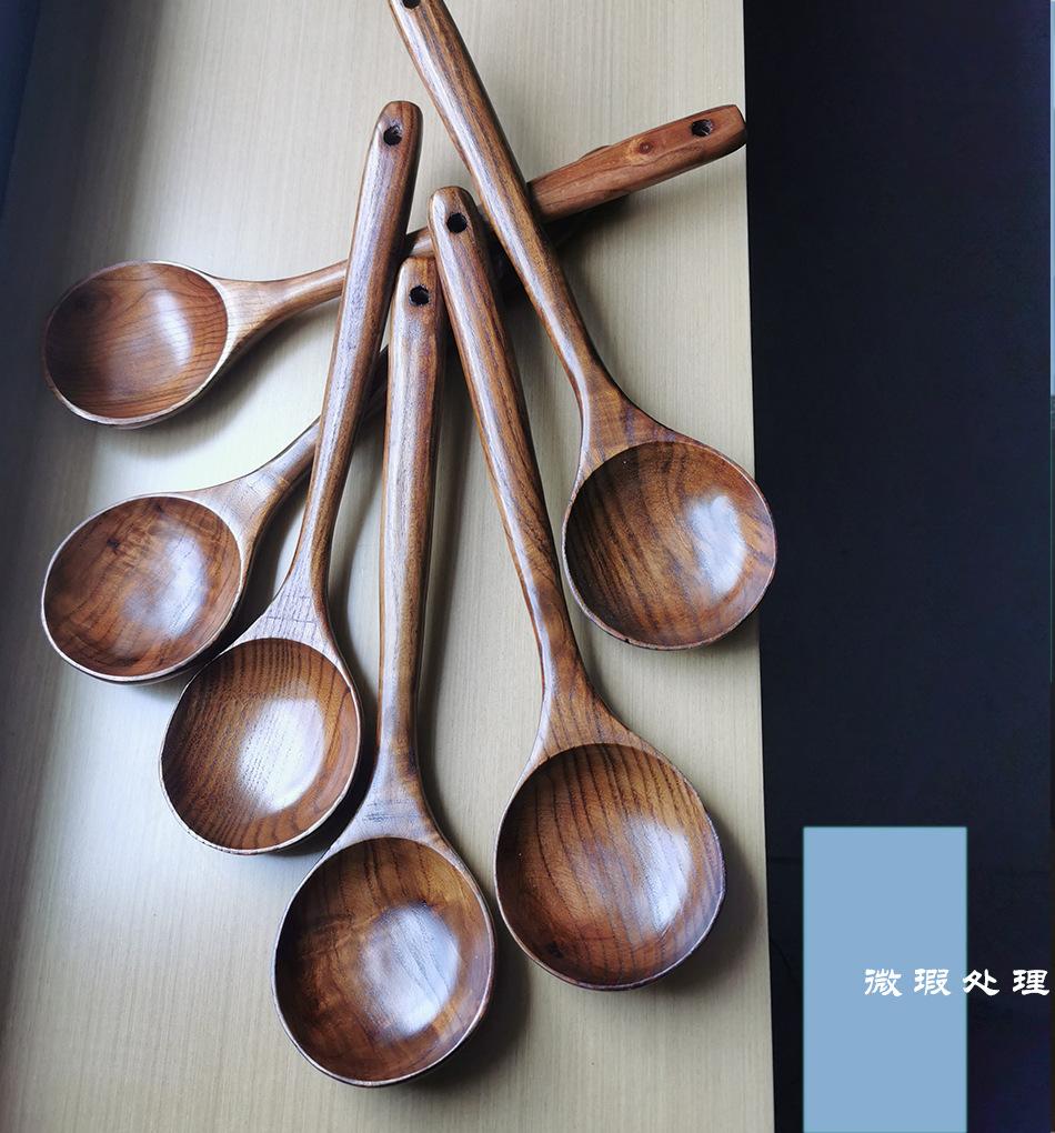 Ele Shi casa especial de madeira longa alça cozinhar colher máscara faca cozinhar coreano mexendo colher de pau tratamento de falhas