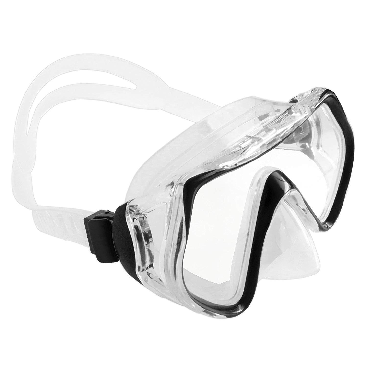3.O acabamento destes óculos de mergulho é muito bom. Os dois espelhos possuem um amplo campo de visão, permitindo ver com mais clareza na água.