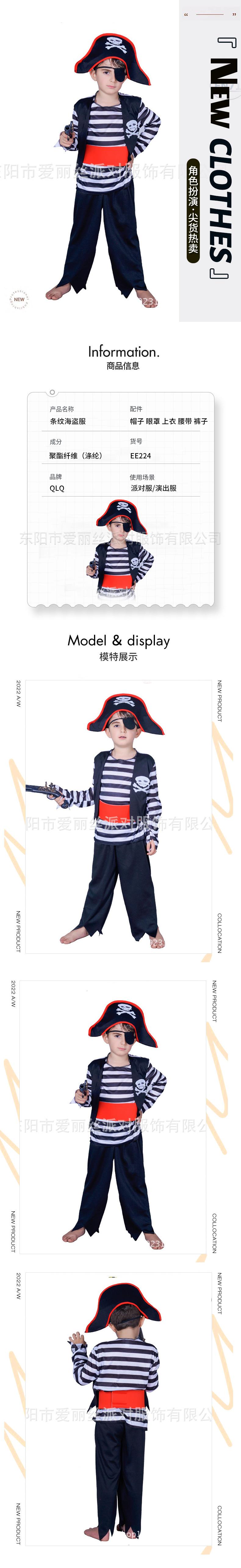 Fantasia Infantil Masculina Listrada de Pirata Mascarada Fantasia para Apresentação de Palco Fantasia Cosplay de Halloween