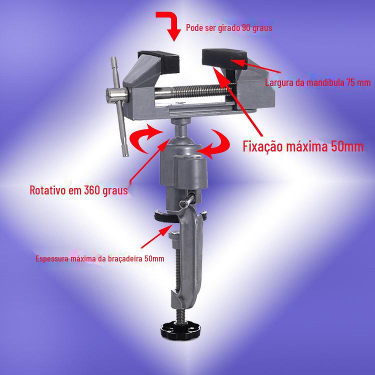 Torno de bancada leve em liga de alumínio (torno de mesa). Características deste produto: leve e conveniente, rotação de 360 graus, adequado para processar pequenas peças em casa e nas fábricas.
