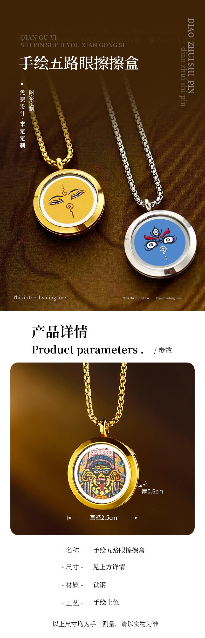 Novo Patrimônio Cultural Imaterial Pingente Thangka Pintura Caixa Deus da Riqueza Cinco Vias Tara Verde Zakyamuram Aço Titânio Colar Caixa Gauwu Estilo Nacional