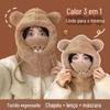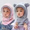 Chapéu quente das crianças inverno máscara de equitação ao ar livre urso bonito earmuffs pai-criança lenço pullover integrado chapéu pullover