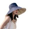 Chapéu de praia estilo coreano, moda primavera e verão, dupla face, protetor solar, chapéu de aba grande, pano olho de pássaro, corda à prova de vento, chapéu de pescador