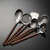 Colher de sopa Aen 304 de aço inoxidável estilo japonês com cabo de nogueira, mini pá pequena, escorredor multiestilo, concha para sopa de ramen