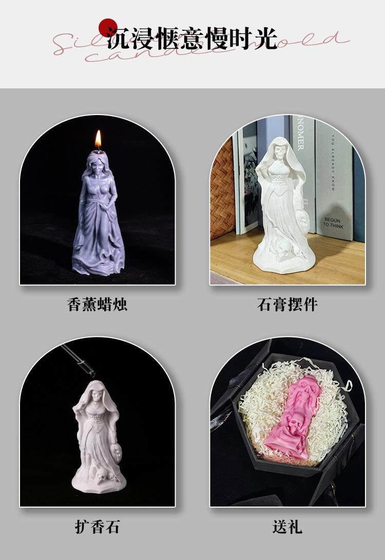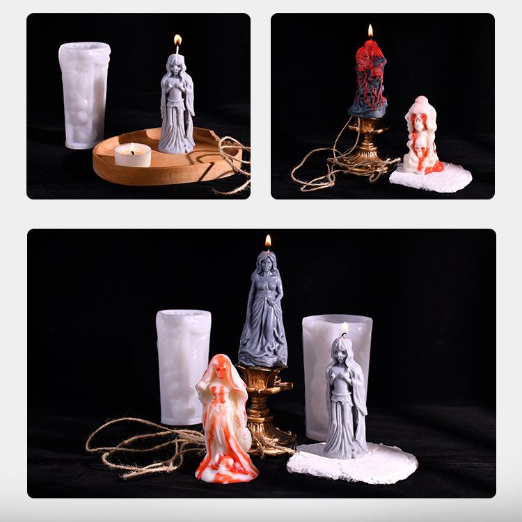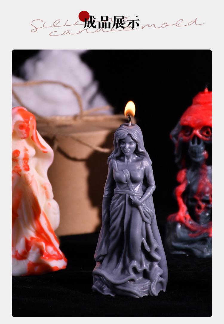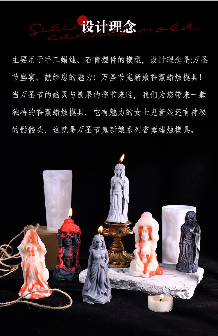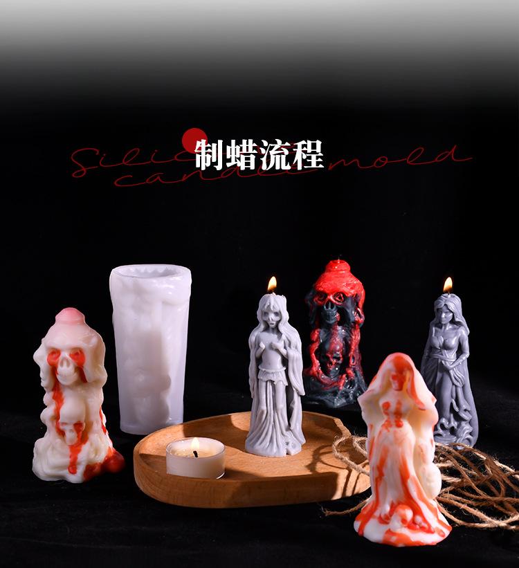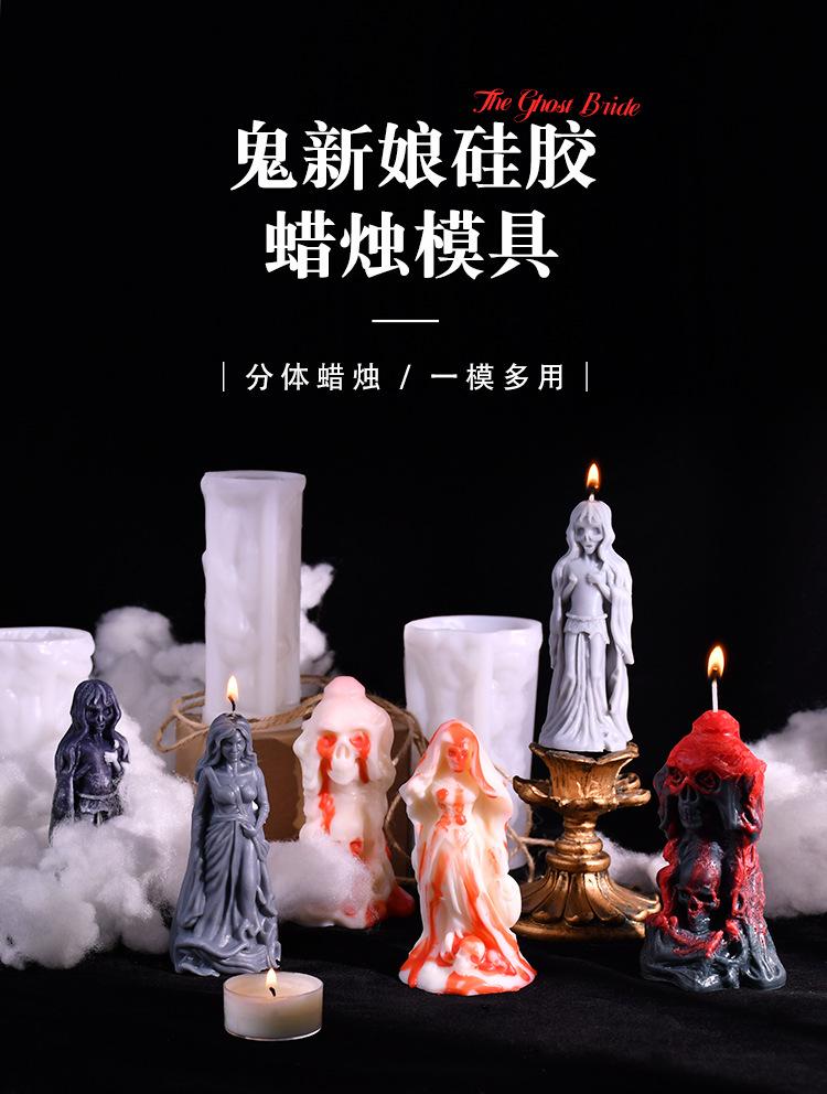 Molde de Silicone Vela Perfumada Noiva Fantasma Sanxin Estátua de Terror Halloween Vela DIY Ornamento de Gesso Ferramenta de Lixamento