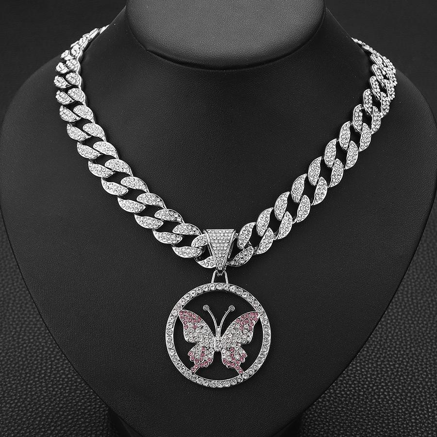 Explosões transfronteiriças europeias e americanas, joias hip-hop, pingente de borboleta com diamantes, colar unissex da moda