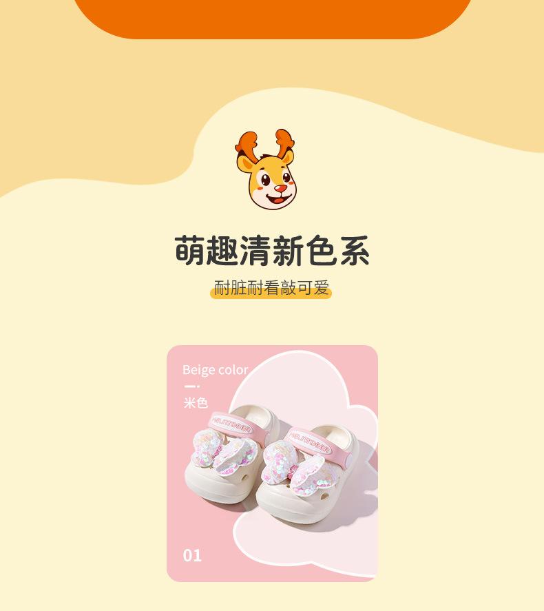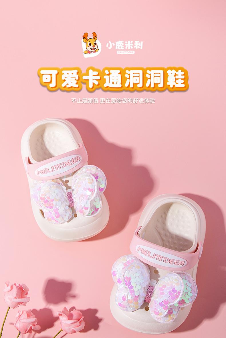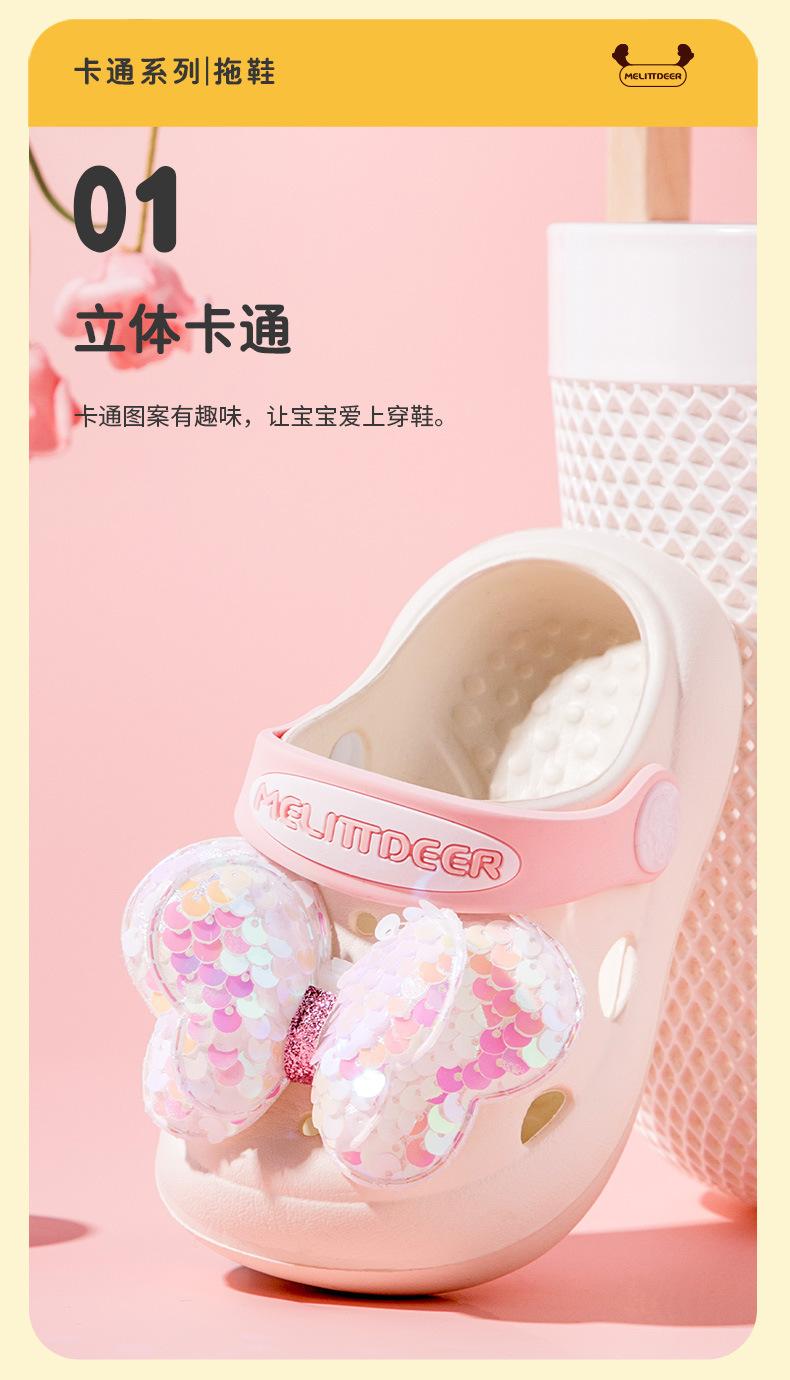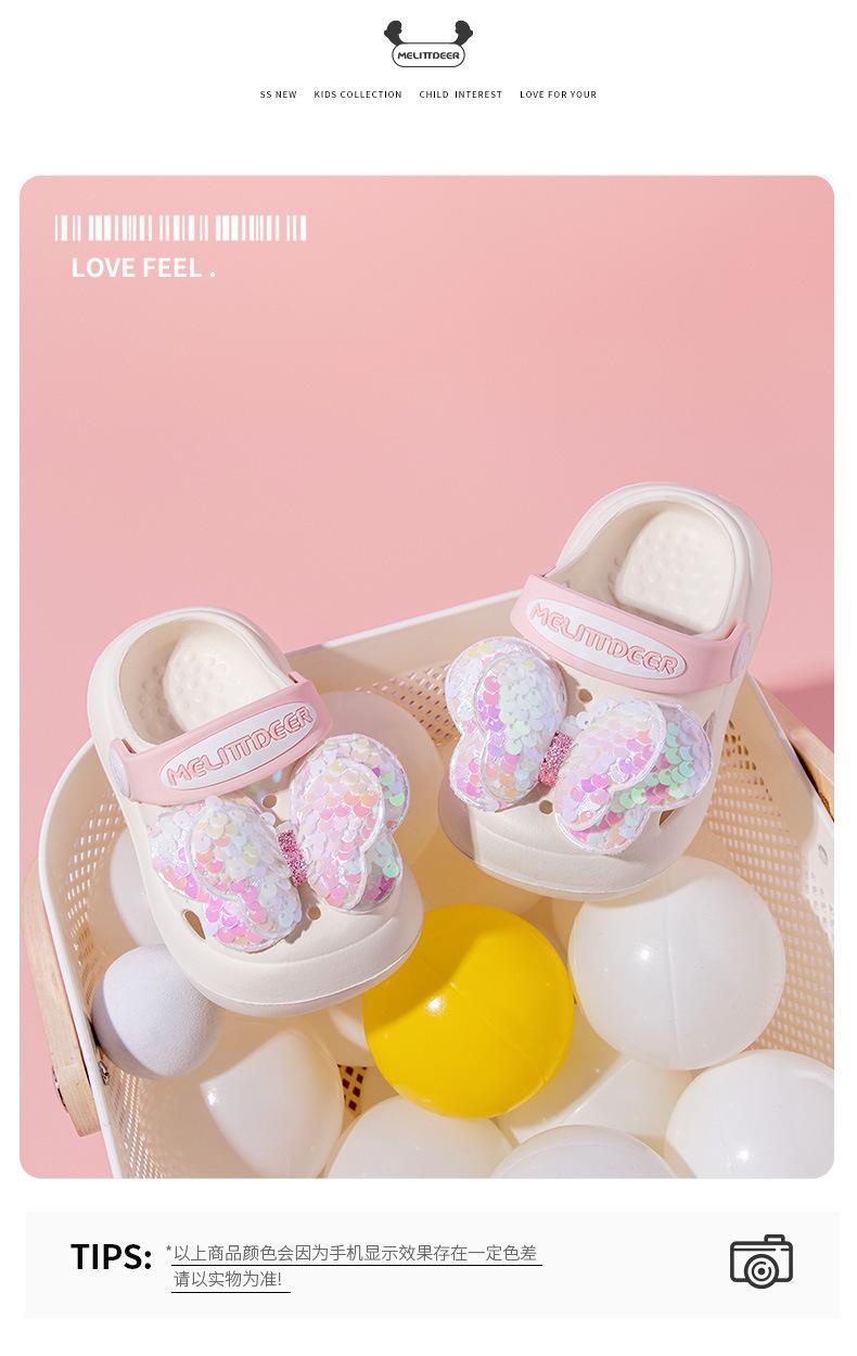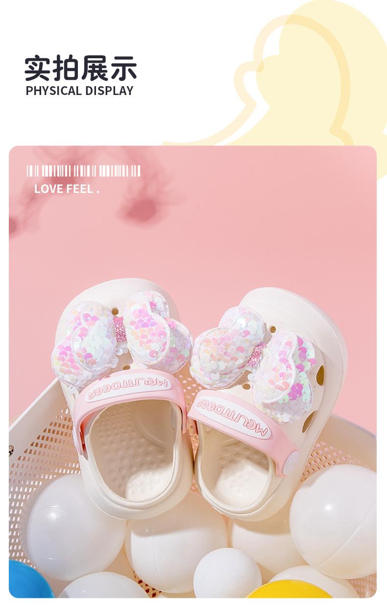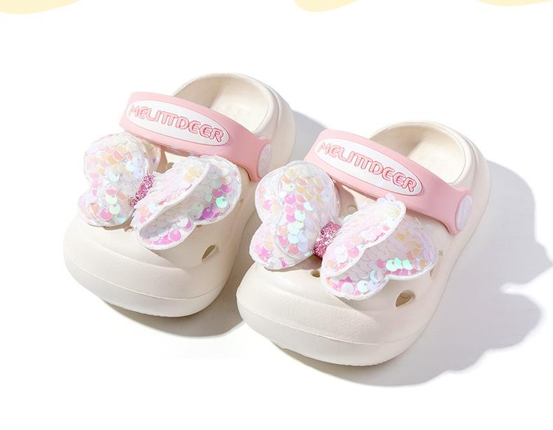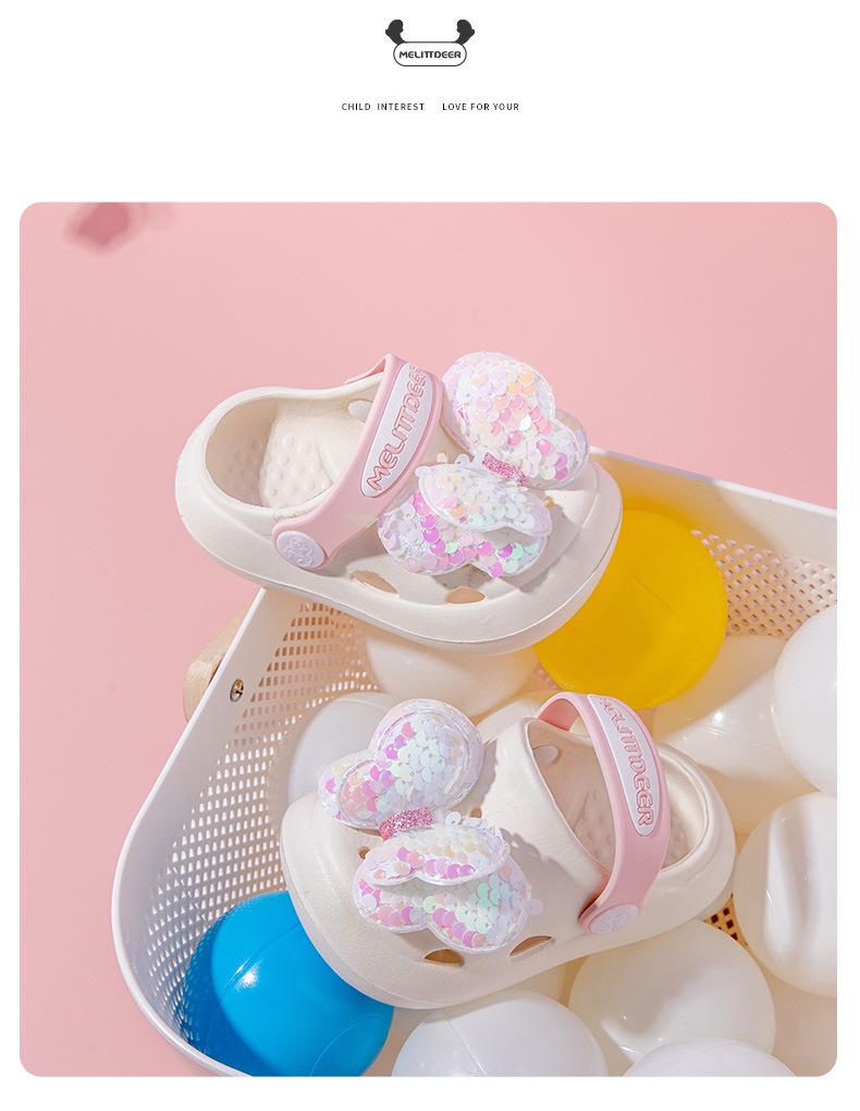 Novos chinelos infantis de verão, sapatos fofos com buracos de desenho animado para meninas, sandálias respiráveis com lantejoulas e ocas, atacado