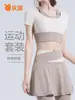 Terno de ioga feminino cor-combinando Fake de duas peças de manga curta de secagem rápida respirável esportes hip-lifting cintura alta calças apertadas anti-luz