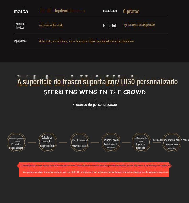 .①Este produto é feito de aço inoxidável 201, que é um artesanato e não é adequado para bebidas e bebidas alcoólicas. Se precisar de material 304, entre em contato conosco. O preço é negociável.... .②Este produto é embalado em uma embalagem neutra. Por padrão, não há informações do fabricante, data de produção e certificado de qualidade. Se você precisar dessas informações, anote ou entre em contato conosco. As taxas relevantes serão calculadas separadamente.