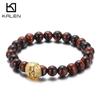 Pulseira de contas de olho de tigre personalizada, simples e gerável, feita à mão, pulseira de caveira de aço inoxidável da moda masculina