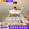 Lustre Ventilador Estético Estilo Song, Lâmpada Ventilador de Teto Estilo Chinês Novo, Lâmpada Ventilador de Quarto em Tecido Estilo Antigo em Forma de Flor Folha de Bambu