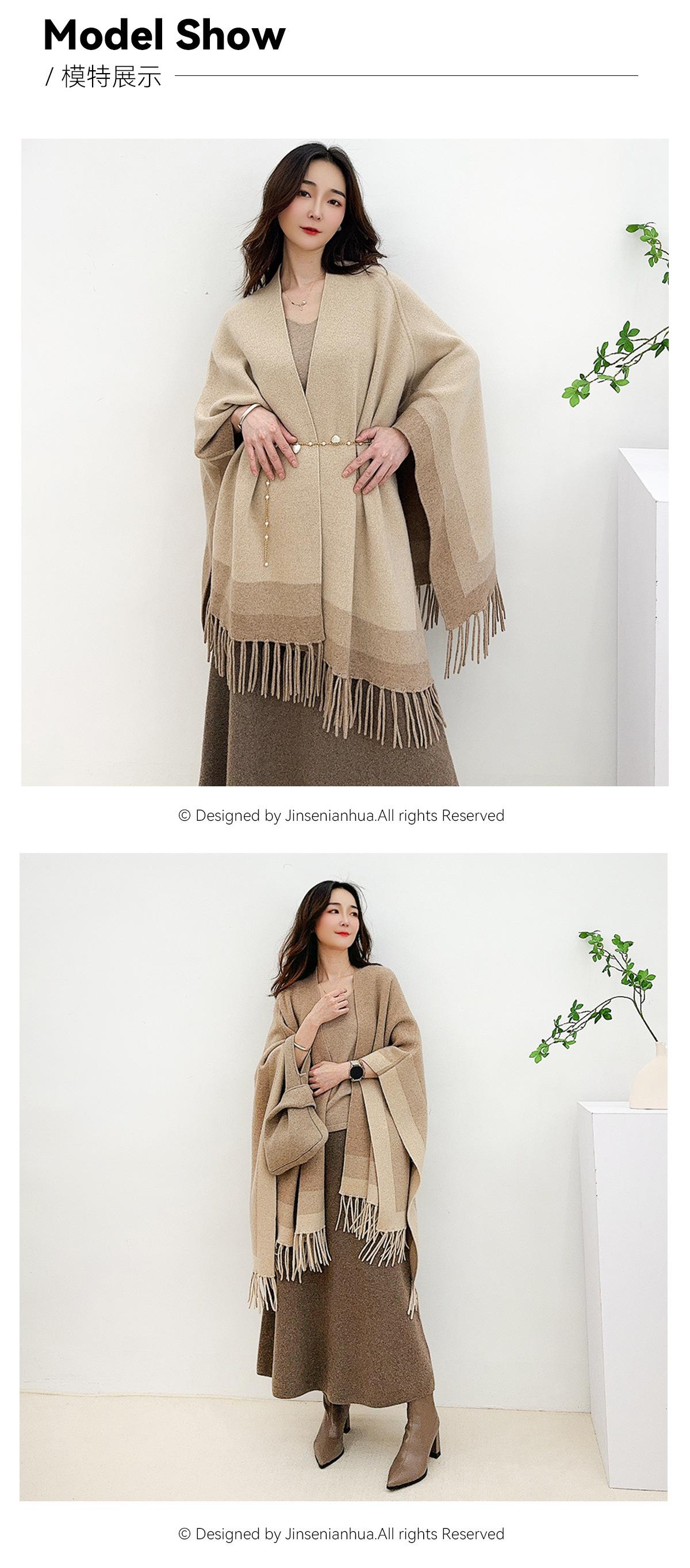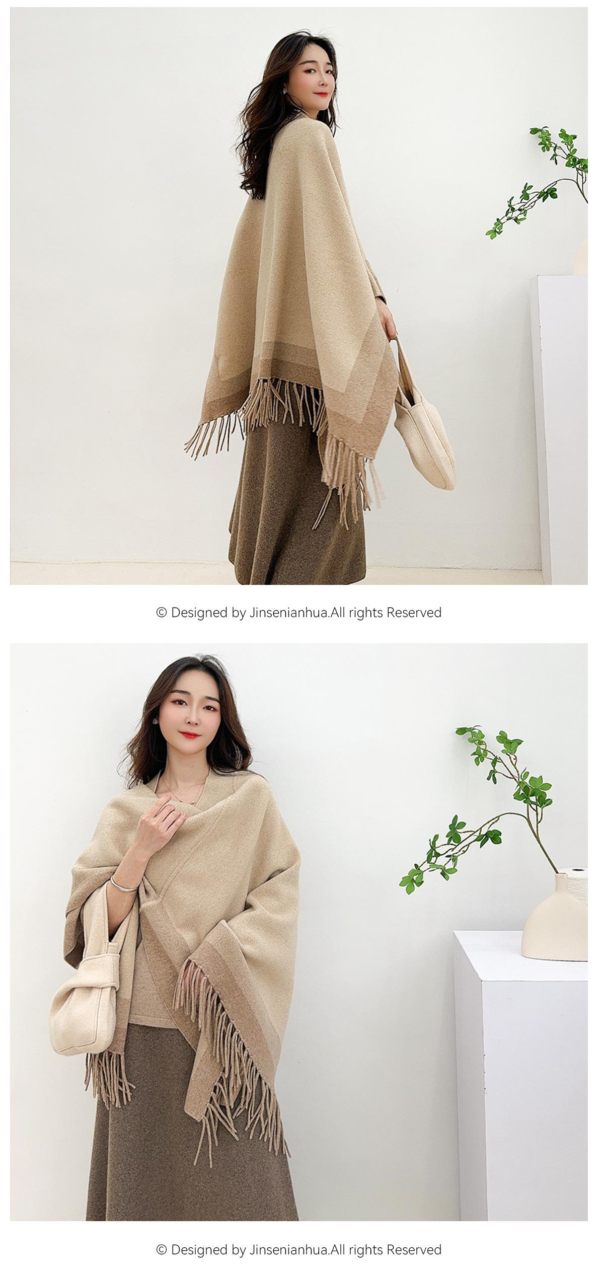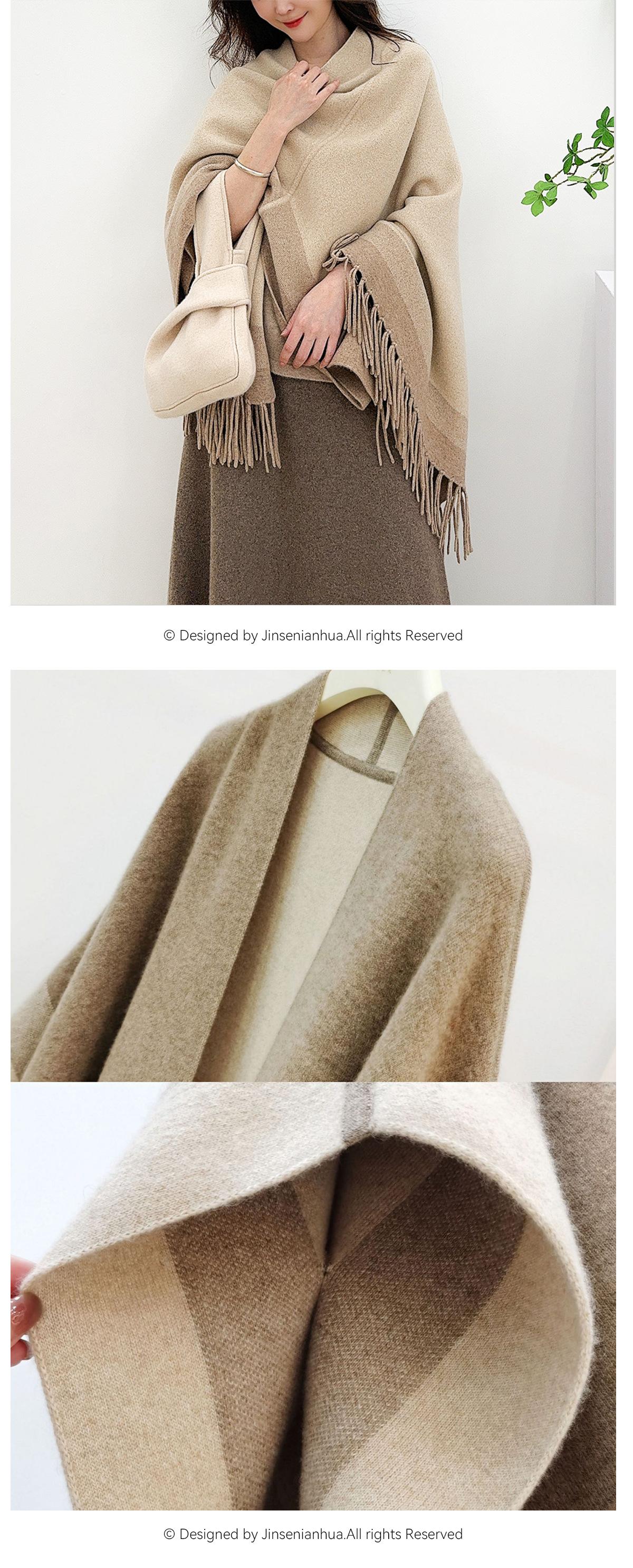 Fabricante de Origem Xale Capa de Caxemira Pura de Comprimento Médio Espessura Pesada Dupla Face com Design de Manga Capa