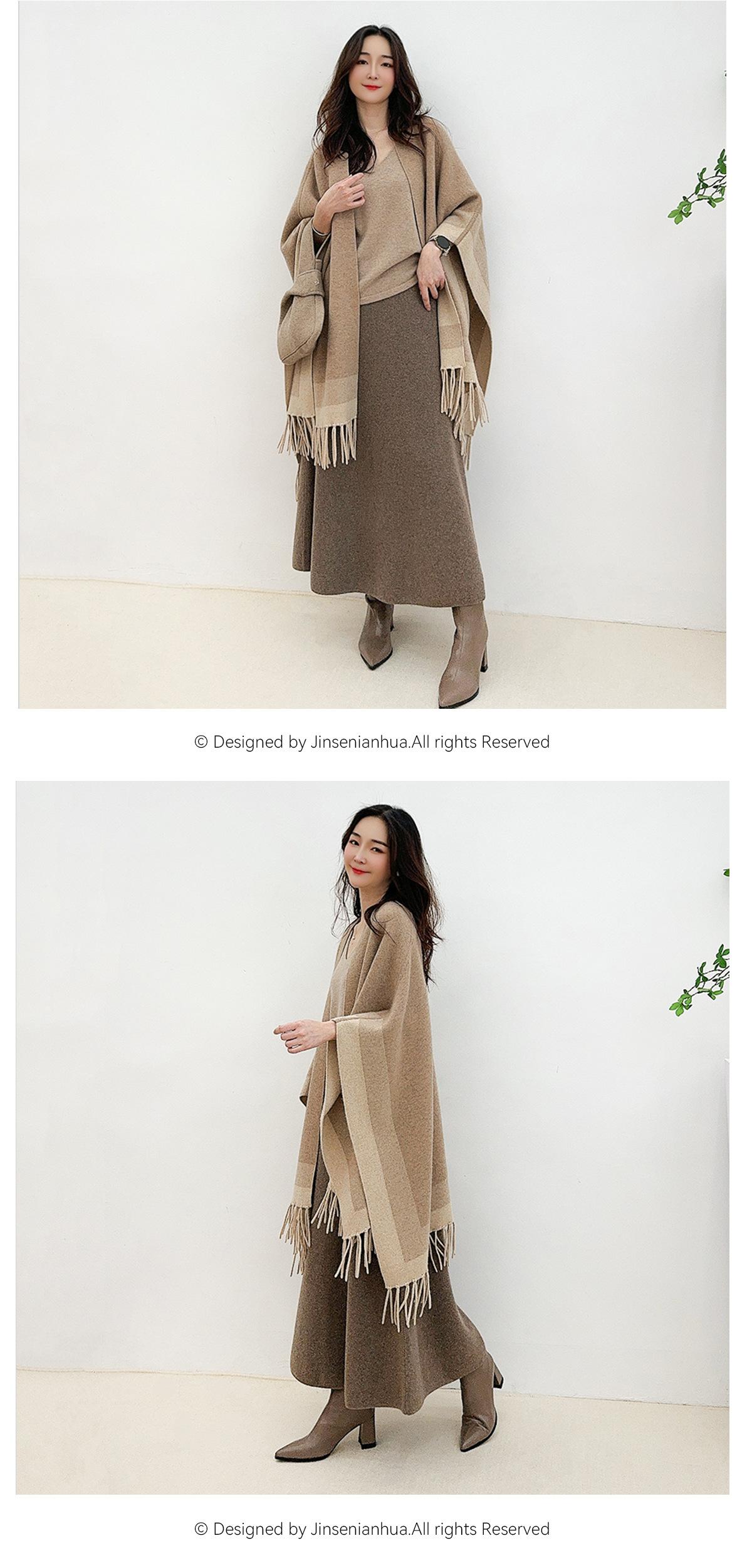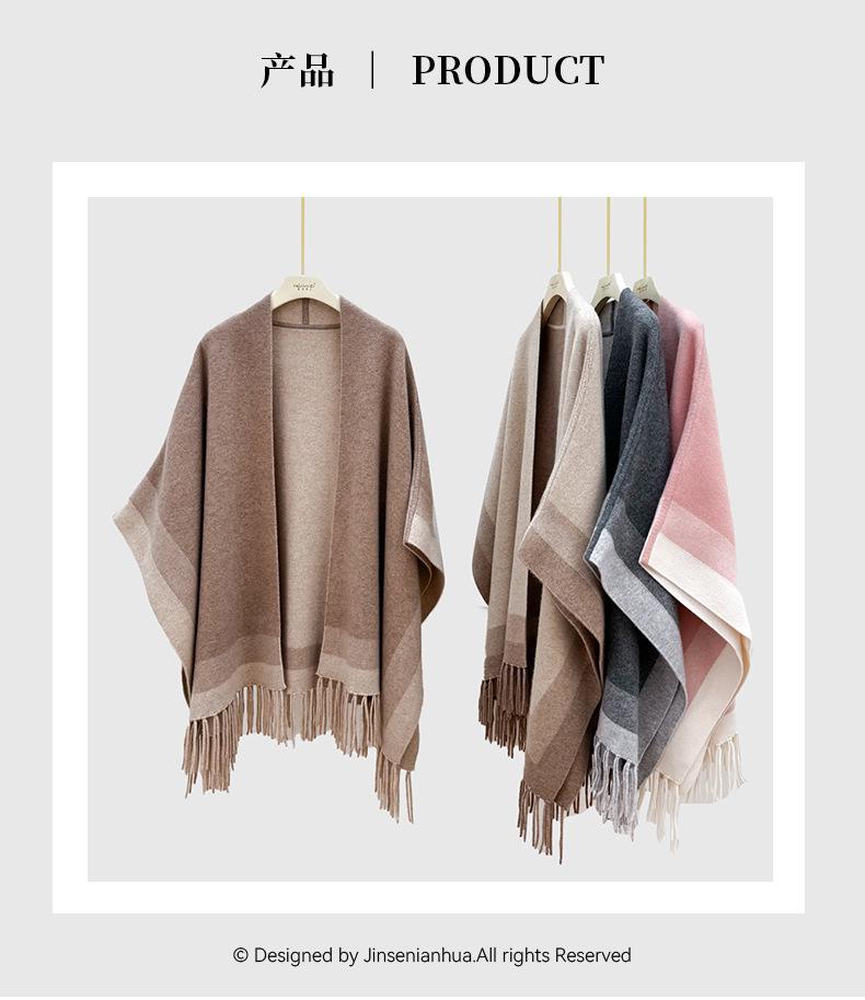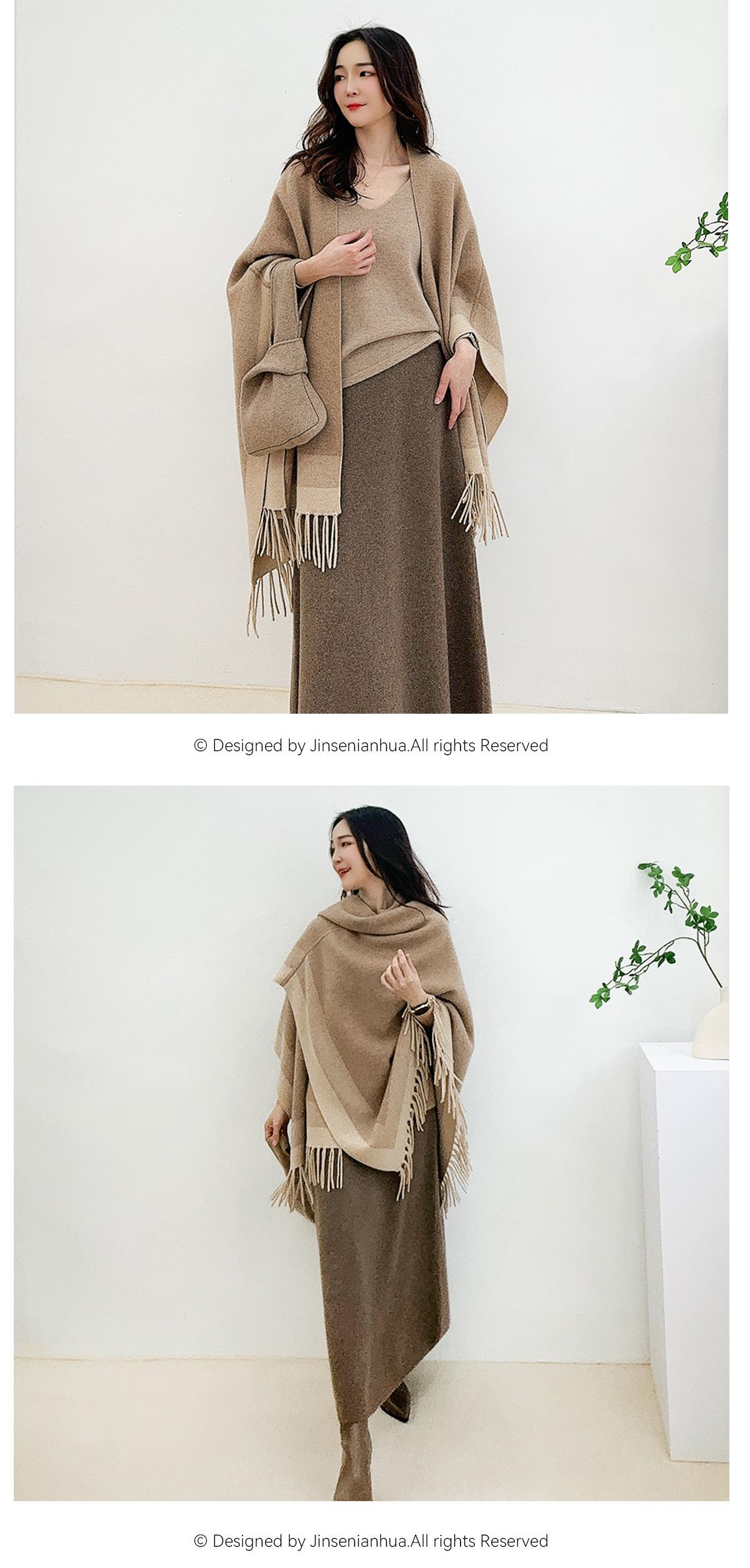 Fabricante de Origem Xale Capa de Caxemira Pura de Comprimento Médio Espessura Pesada Dupla Face com Design de Manga Capa