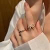 Conjunto de duas peças de laço de pérola anel aberto empilhado feminino nicho anel de dedo indicador requintado de alta qualidade anel verão