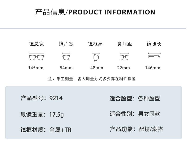 2025 novos óculos TR90 anti-luz azul Xiaohongshu mesmo estilo rosto grande emagrecimento podem ser combinados com óculos de armação para miopia 1124