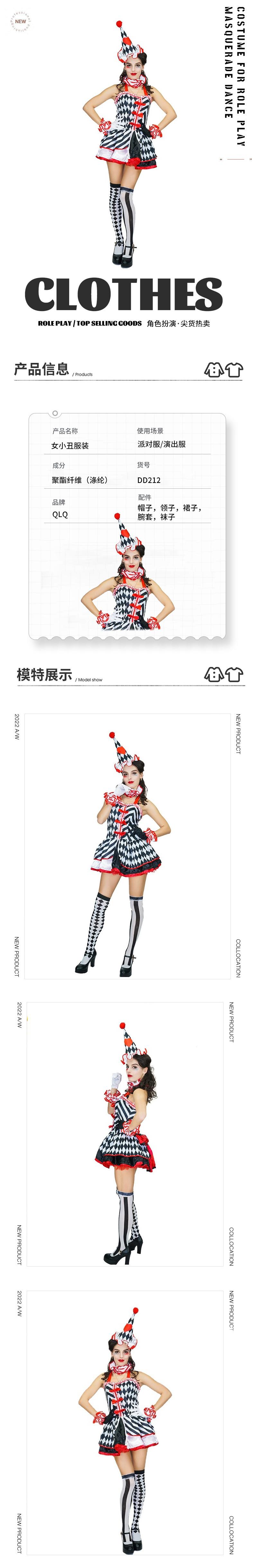 Fantasia de Palhaço Adulto Feminino Cosplay de Halloween Fantasia Roupas de Festa Máscara Traje de Performance de Palco