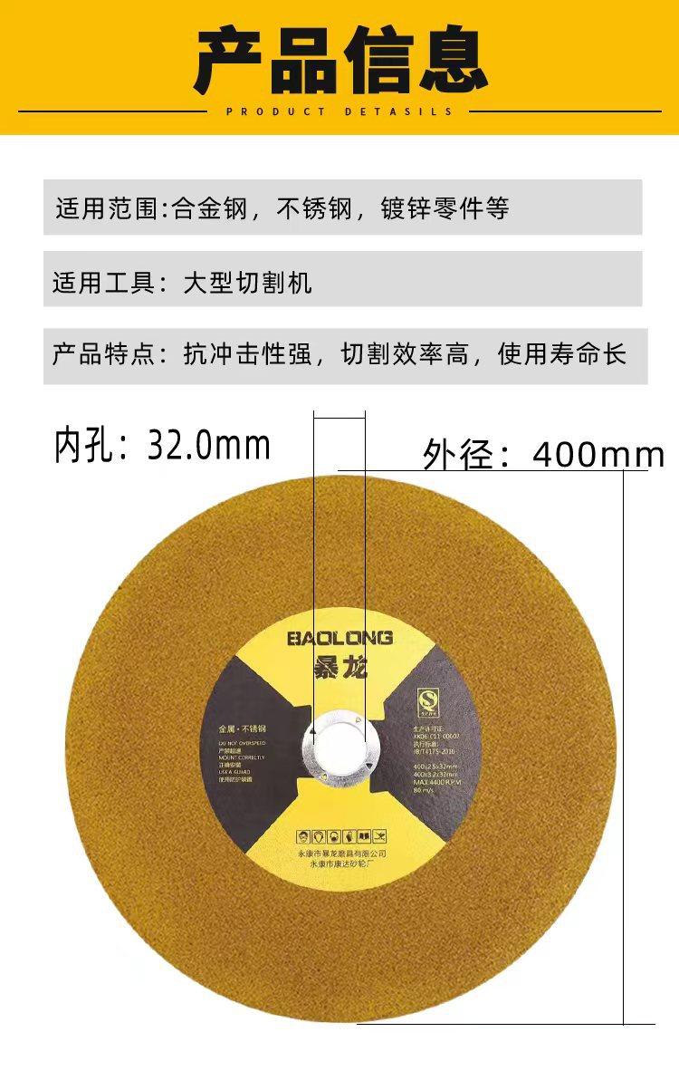 Peça de corte direto da fábrica atacado 400mm aço inoxidável metal rebolo ângulo moedor fatia