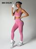 [Modelo Amostra] Calças Esportivas Justas Europeias e Americanas Transfronteiriças, Sutiã de Yoga, Leggings de Yoga Foscas, Conjunto de Roupa Fitness
