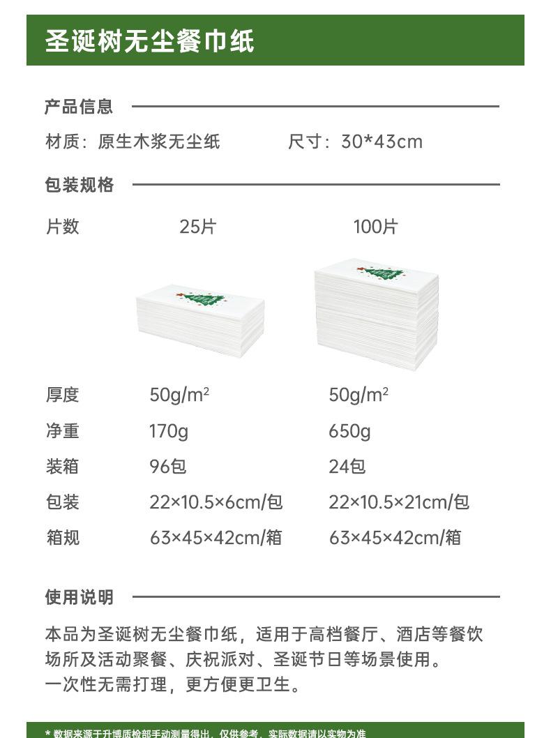 3043 Christmas tree printed dust-free napkin (25 pieces), 3043 Christmas tree printed dust-free napkin (100 pieces)