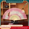 Leque dobrável japonês antigo, leque chinês de alça média e longa, presente artesanal de seda, leque de fábrica de dança erqing, atacado antigo