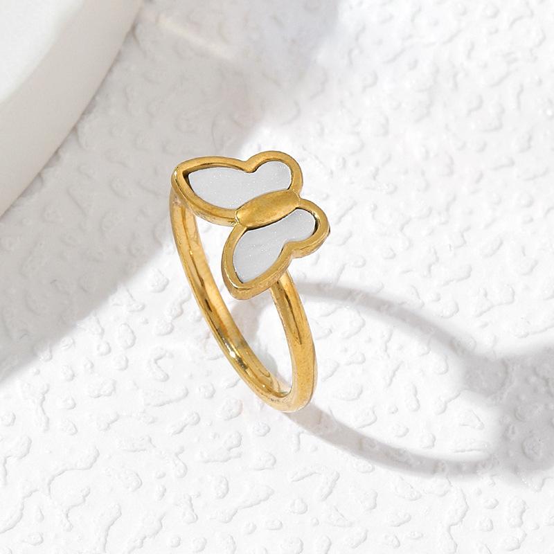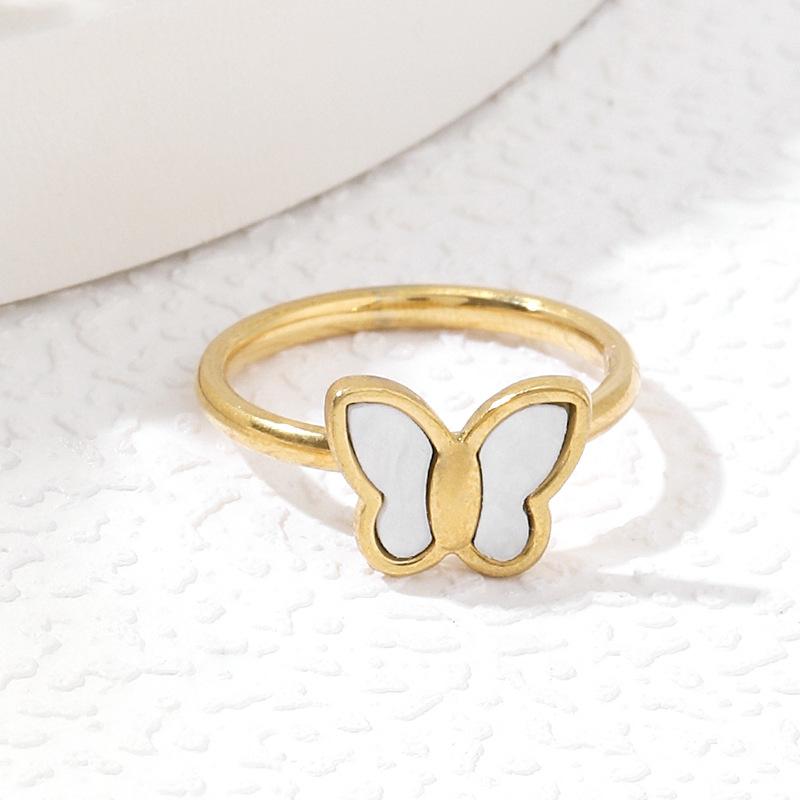 Novo Anel Transfronteiriço de Aço Titânio para Mulheres Europeu e Americano Simples Borboleta Concha Ouro Joias de Aço Inoxidável Moda Fabricante Atacado