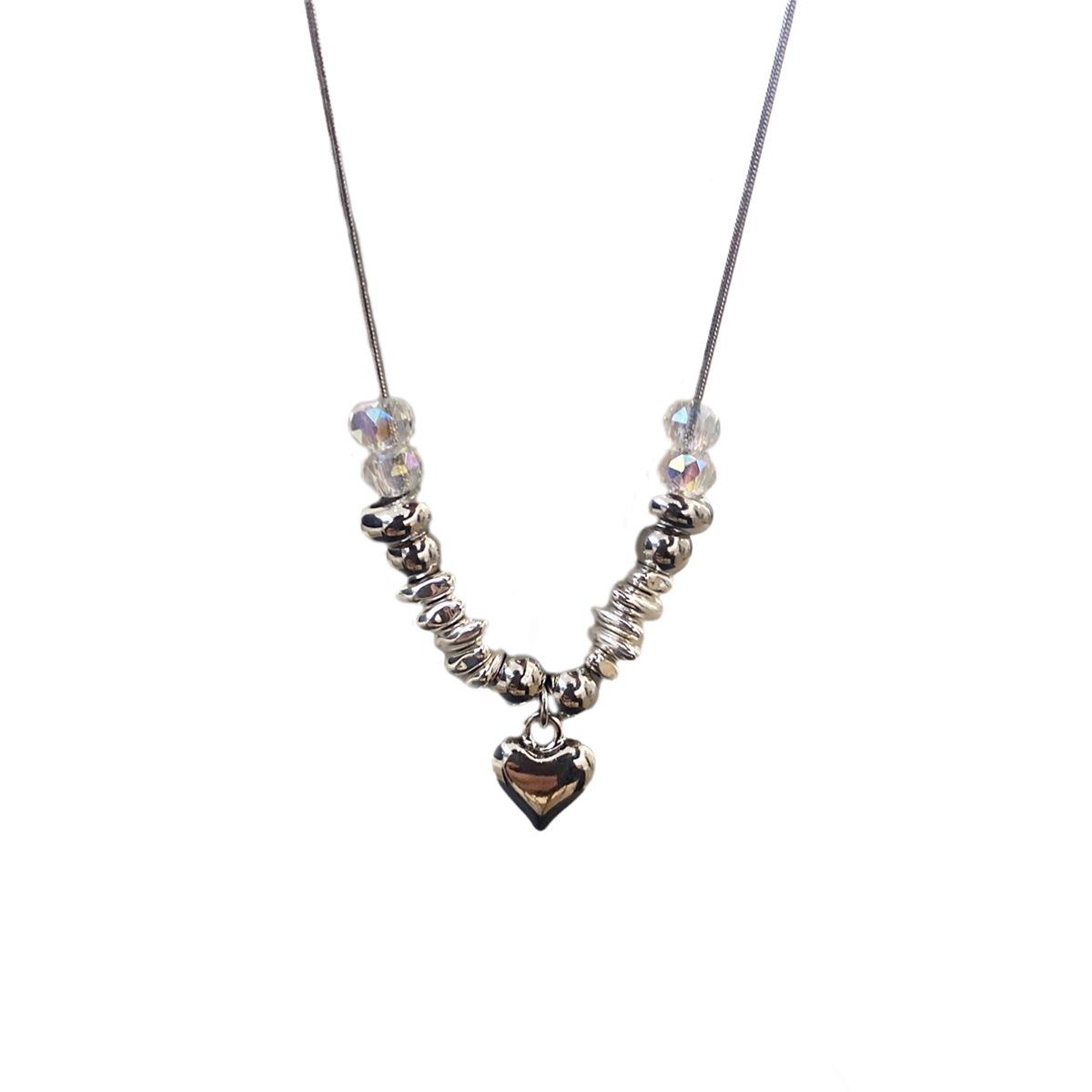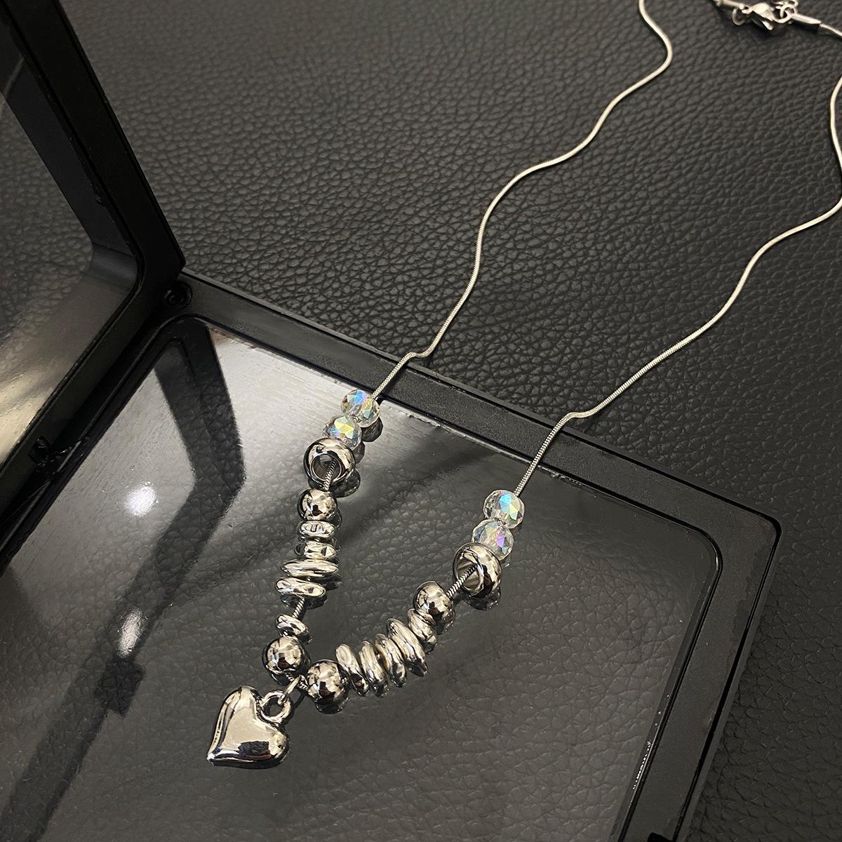 Colar com pingente de amor de metal com contas, design de nicho requintado feminino, corrente de clavícula simples, joias de temperamento de alta qualidade