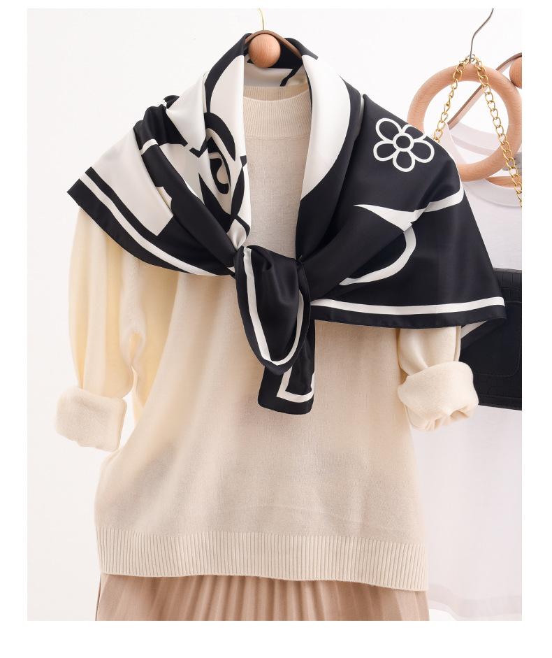 2023 verão novo estilo impresso grande lenço quadrado lenço de seda atacado francês retro imitação lenço de seda dia das mães 90 lenço quadrado para mulher
